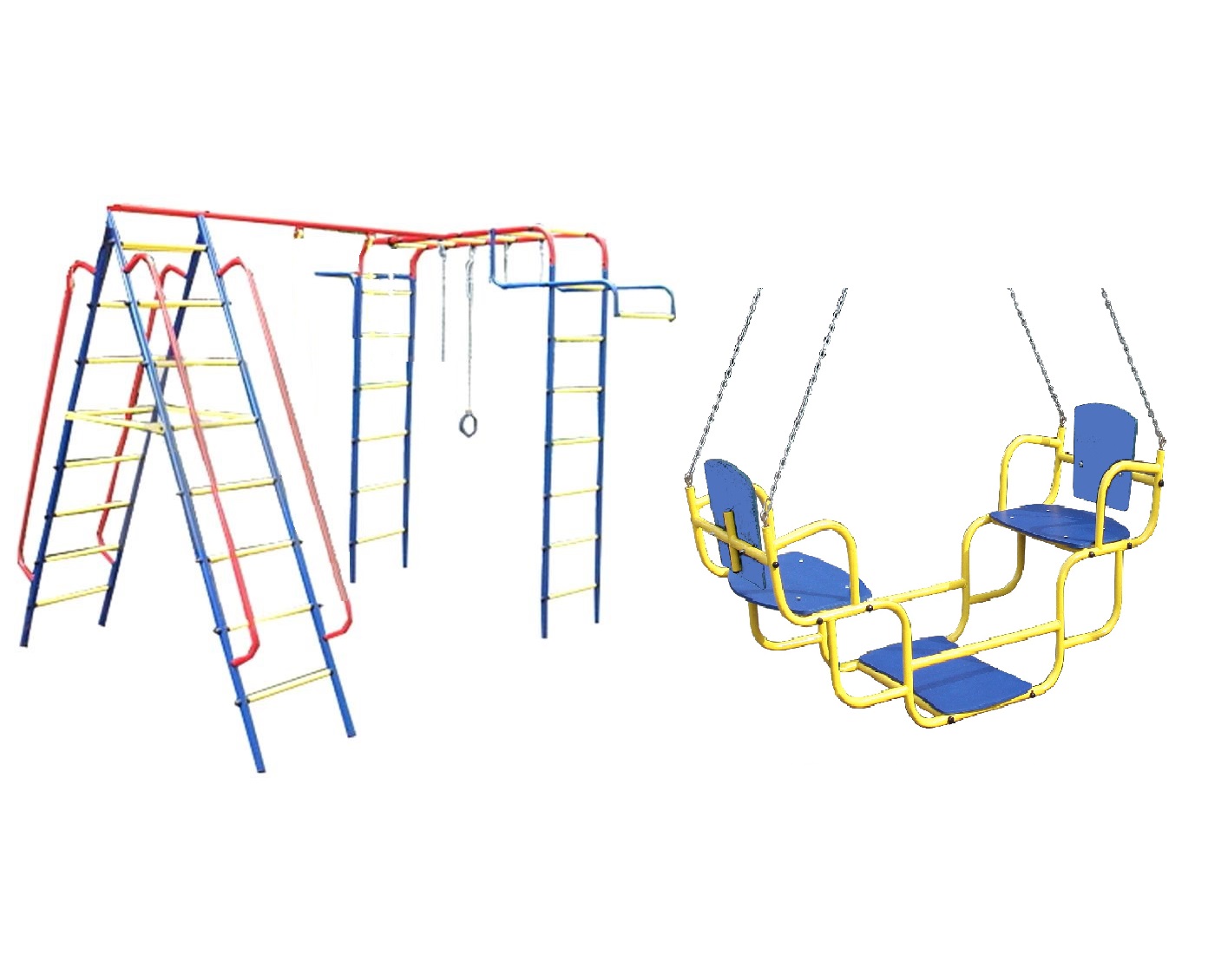 - Дополнительное навесное оборудование: лестница веревочная, трапеция, щит баскетбольный, сетка для лазания.