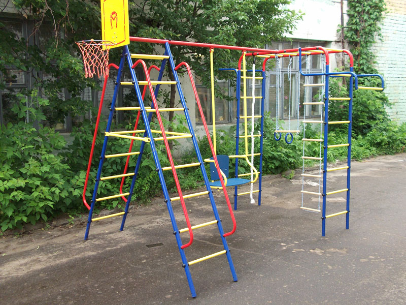 - Дополнительное навесное оборудование: лестница веревочная, трапеция, щит баскетбольный, сетка для лазания.