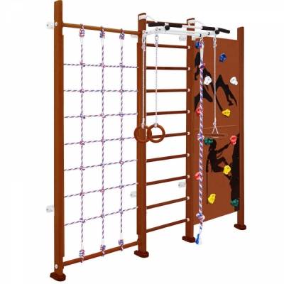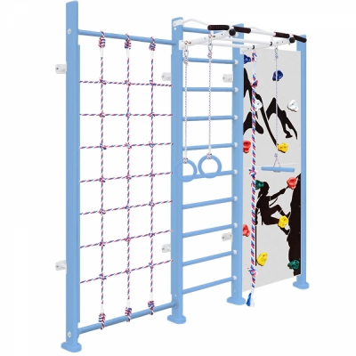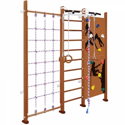 | Комплектация | шведская стенка, турник, сетка, скалодром, канат, кольца, тарзанка |