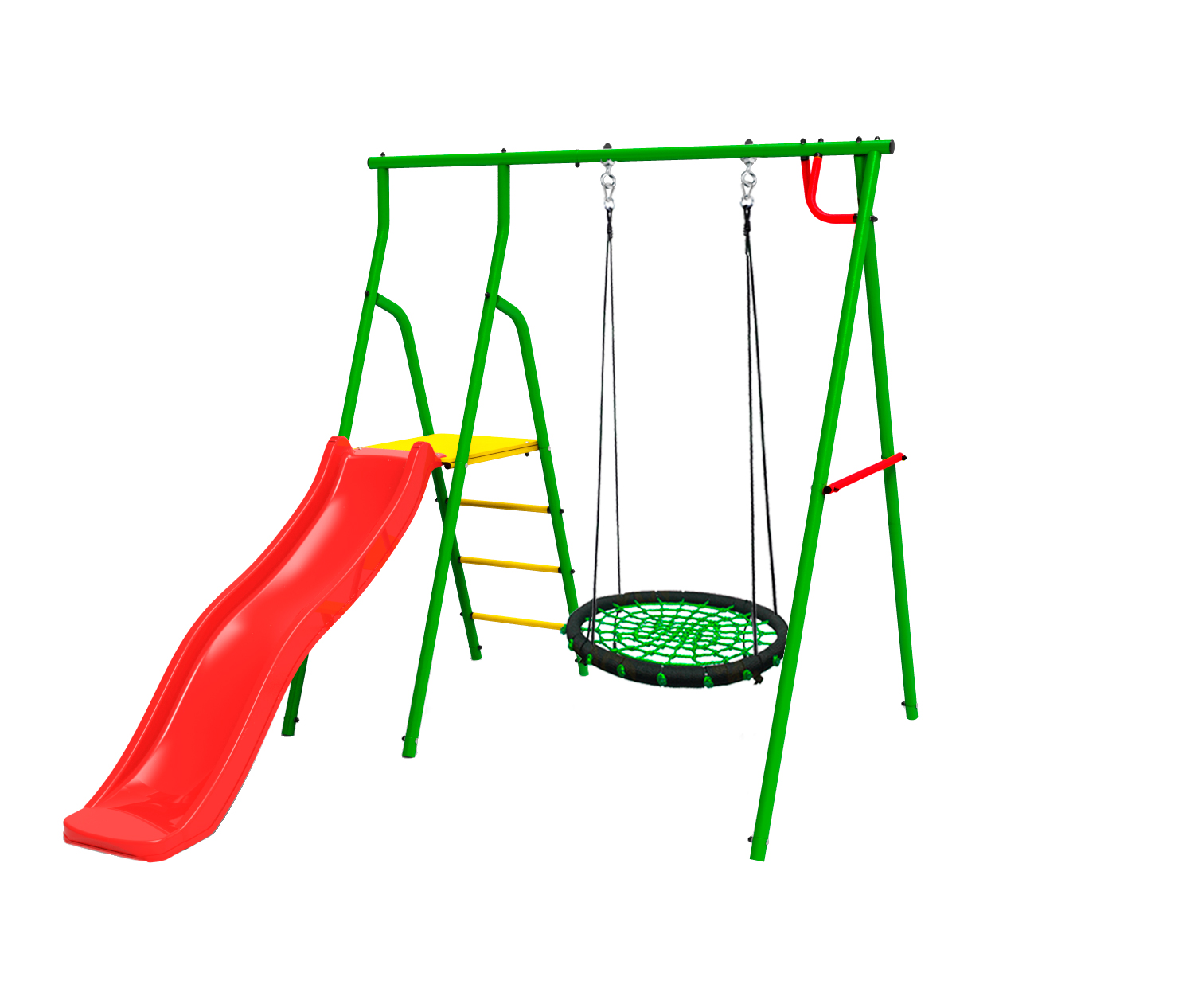 — Комплектация: горка пластиковая 1,6 м, подвесные качели-гнездо