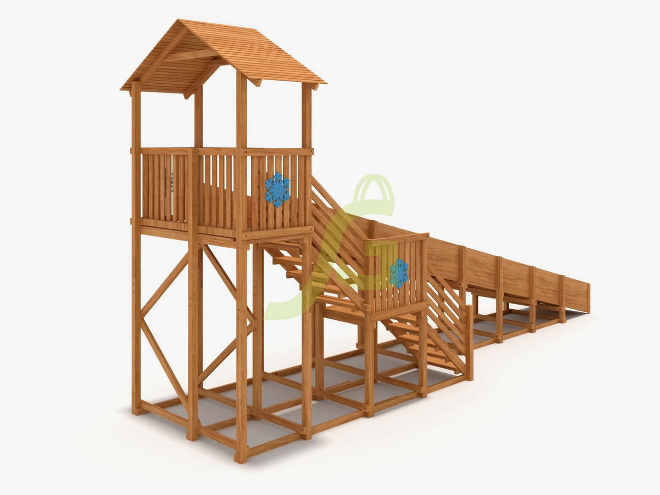 Детские зимние горки Snow Fox (Домик) изготовлены из качественно обработанной древесины. Её поверхность покрывается специальным средством на водной основе, которая не имеет в своём составе вредные вещества, негативно влияющие на здоровье людей.