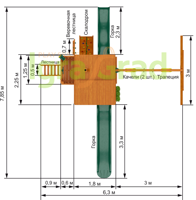 - горка: 300*500*2900, 1 шт., 22,00 кг. (транспортировка только в жёсткой упаковке!)