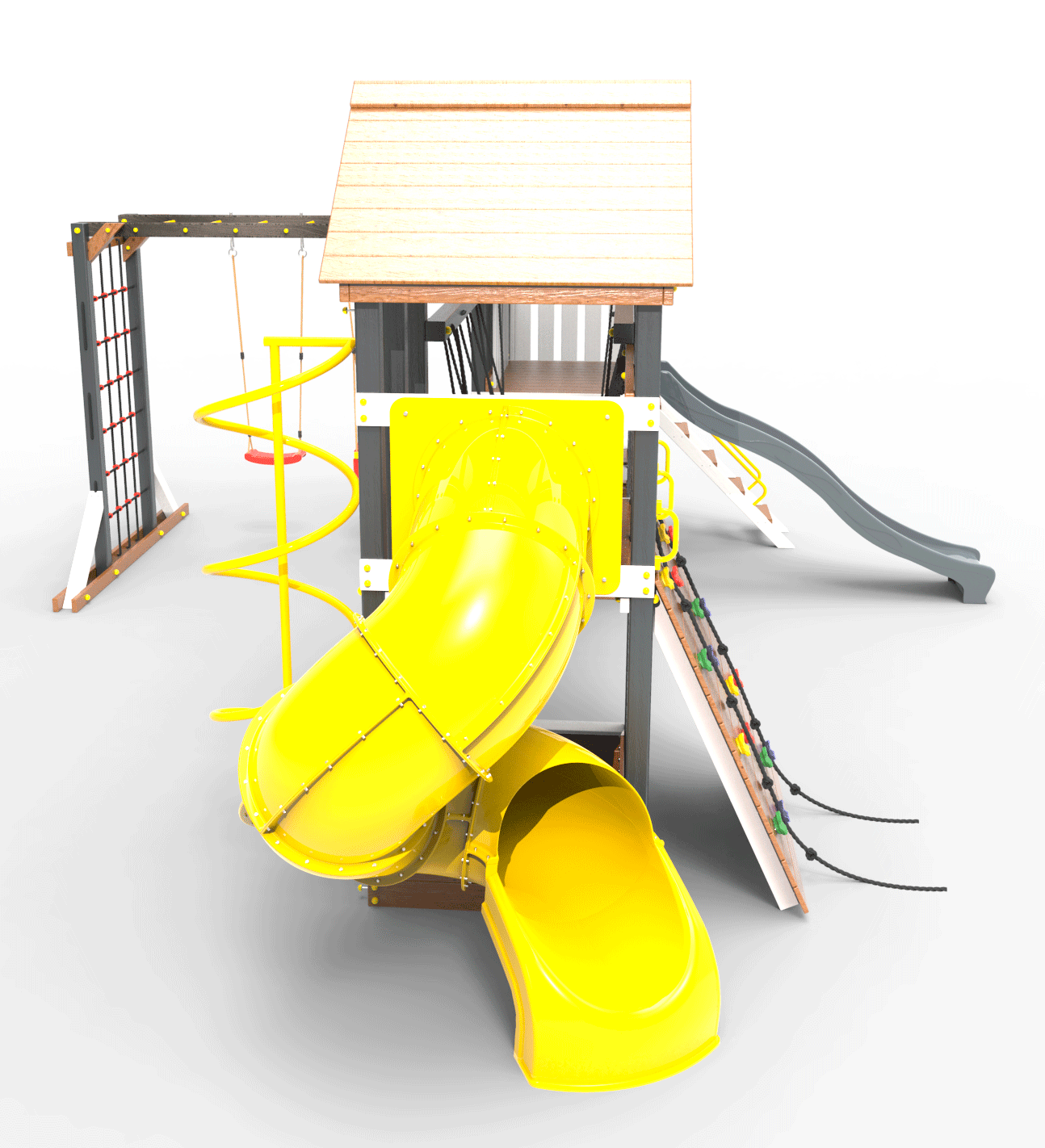 Обращаем Ваше внимание, что фактический цвет детской площадки может отличаться от представленных фото на сайте. Специфика окраски нетоксичными пропитками и красителями допускает отклонения в цветовой гамме отгружаемых изделий. Также обратите внимание, что фактический цвет может отличаться из-за цветопередачи устройства на котором Вы смотрите фото. Производитель оставляет за собой право менять цвет отдельных деталей и комплектующих(включая пластик, канаты и пр.), при этом сохраняя весь функционал и характеристики товара.