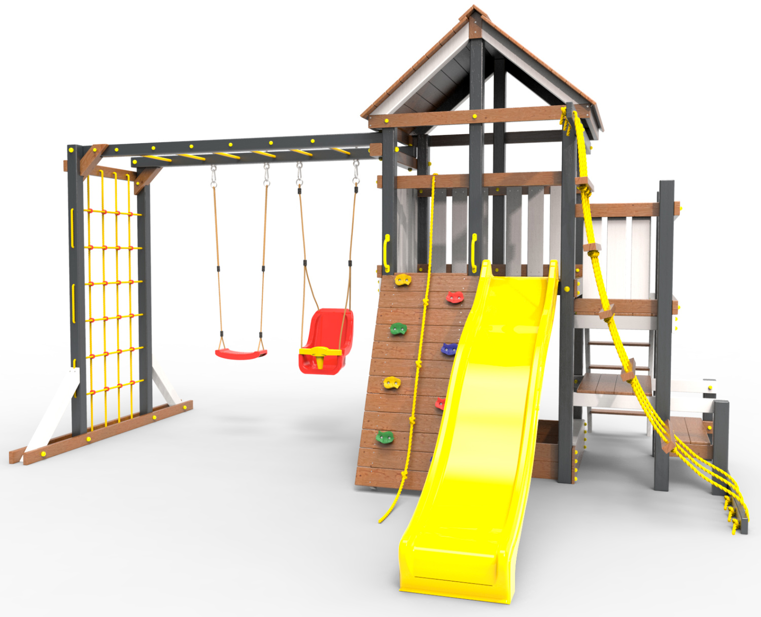 Обращаем Ваше внимание, что фактический цвет детской площадки может отличаться от представленных фото на сайте. Специфика окраски нетоксичными пропитками и красителями допускает отклонения в цветовой гамме отгружаемых изделий. Также обратите внимание, что фактический цвет может отличаться из-за цветопередачи устройства на котором Вы смотрите фото.