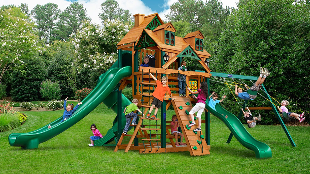 Оригинальный внешний вид игрового комплекса Playnation Горец 2 в модификации Ривьера — это новинка 2018 года с высокими башнями, тремя горками и изысканной крышей Ривьера с декоративными окнами. Площадка отлично впишется в ландшафт загородного участка, а её функциональность понравятся детям.