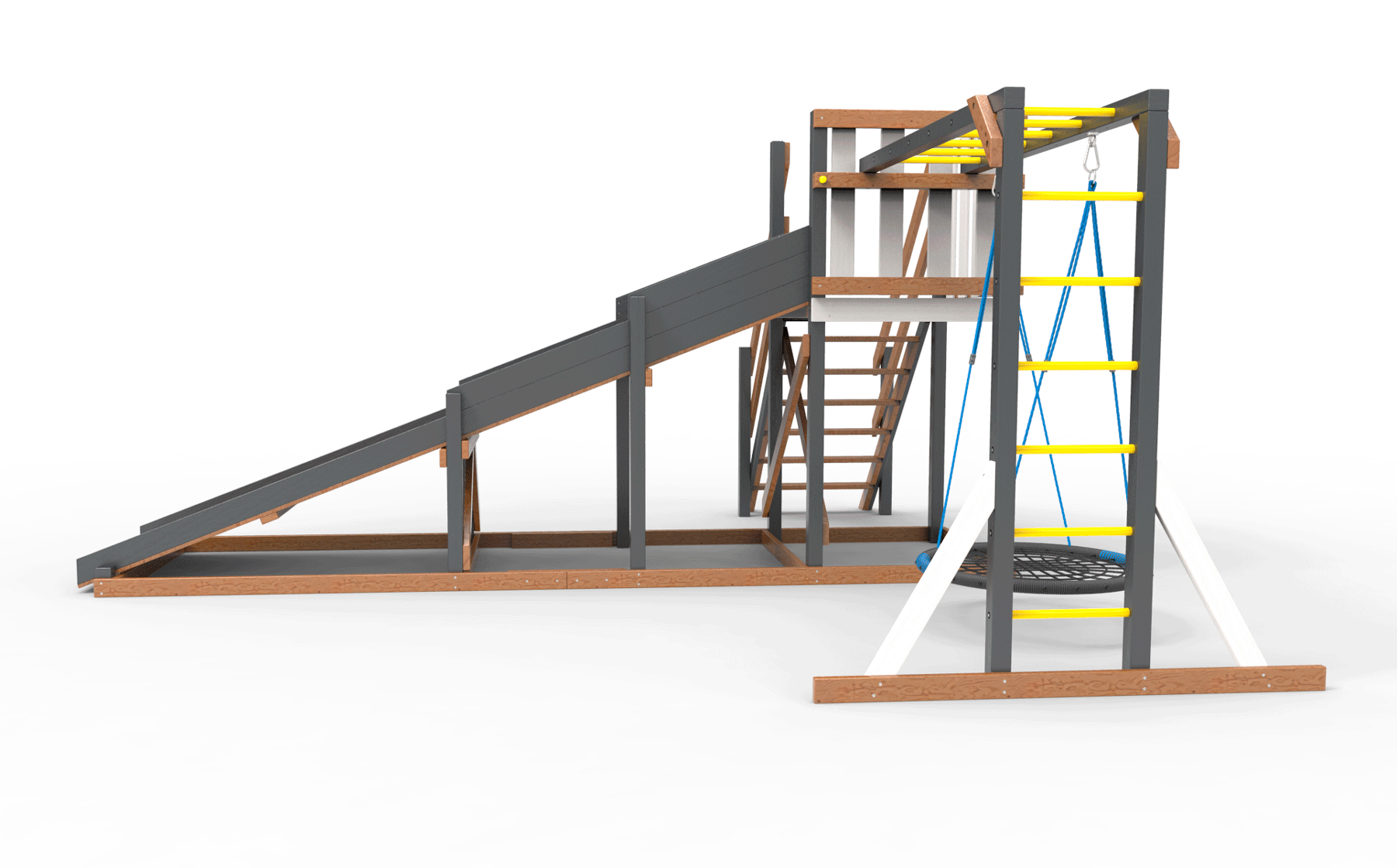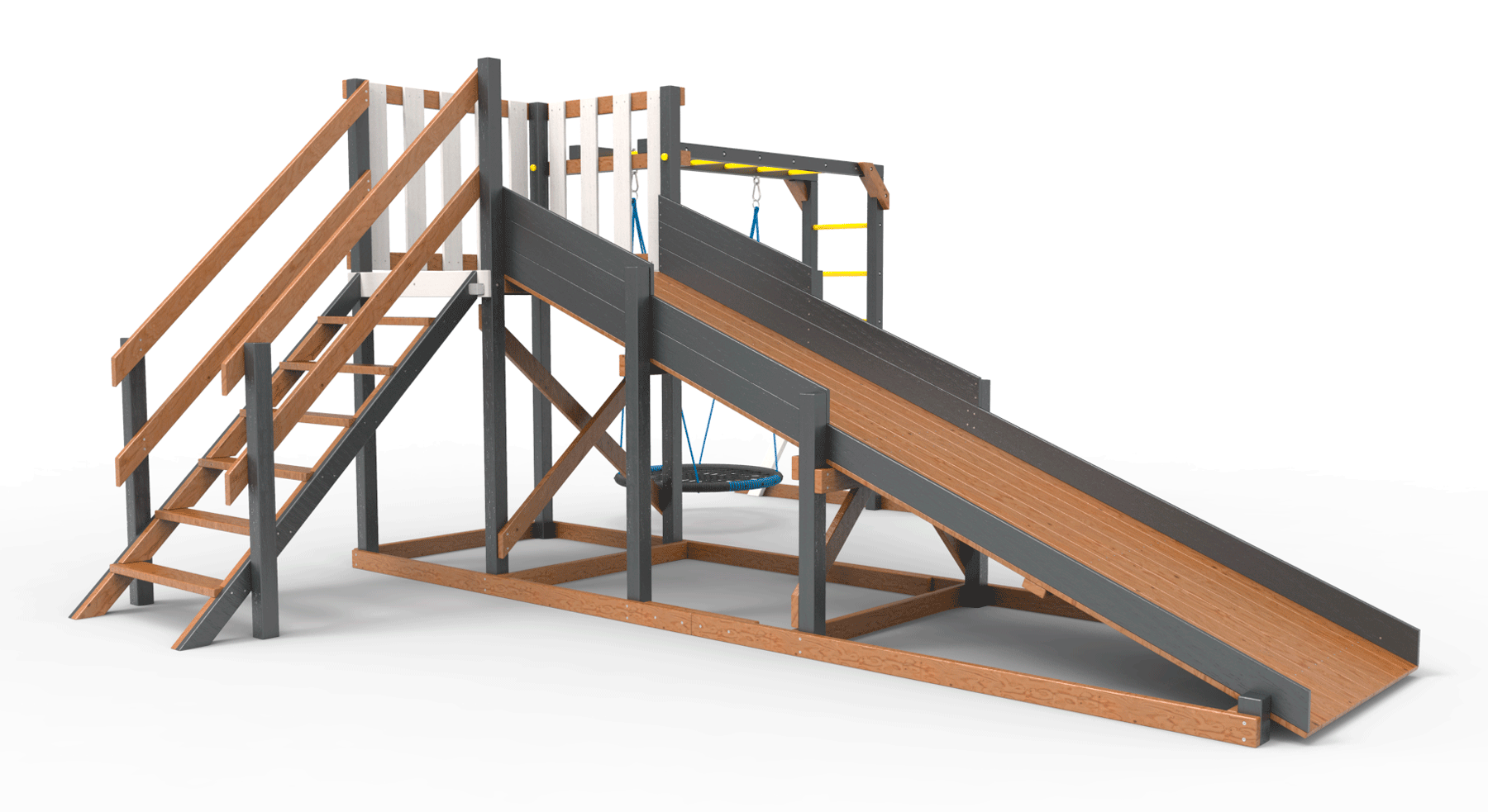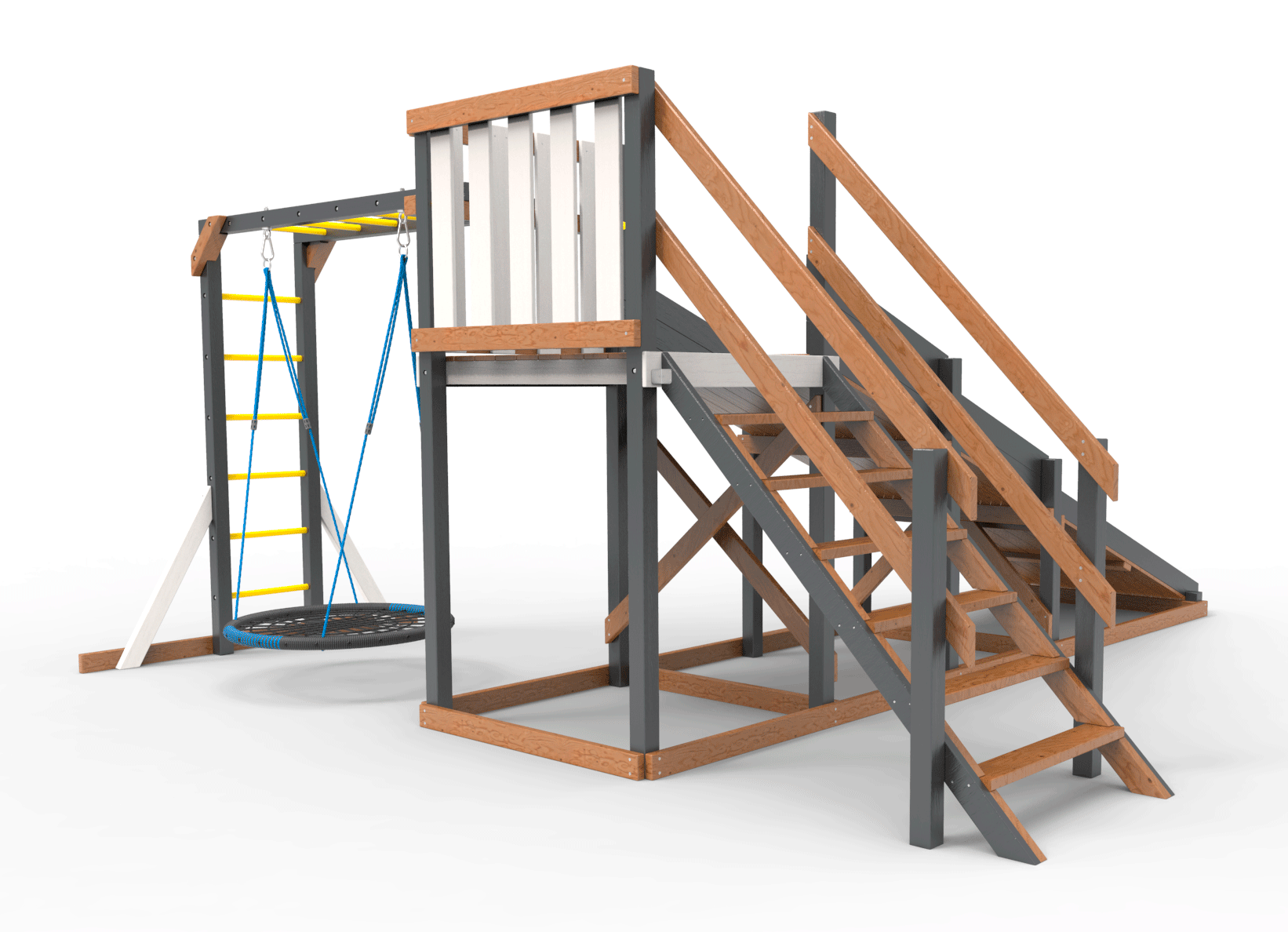 Обращаем Ваше внимание, что фактический цвет детской площадки может отличаться от представленных фото на сайте. Специфика окраски нетоксичными пропитками и красителями допускает отклонения в цветовой гамме отгружаемых изделий. Также обратите внимание, что фактический цвет может отличаться из-за цветопередачи устройства на котором Вы смотрите фото.