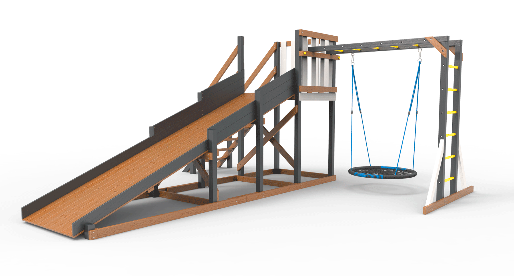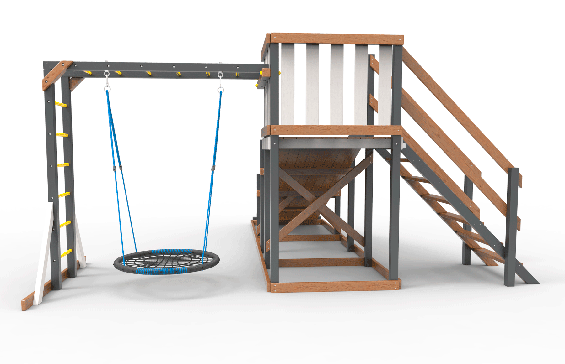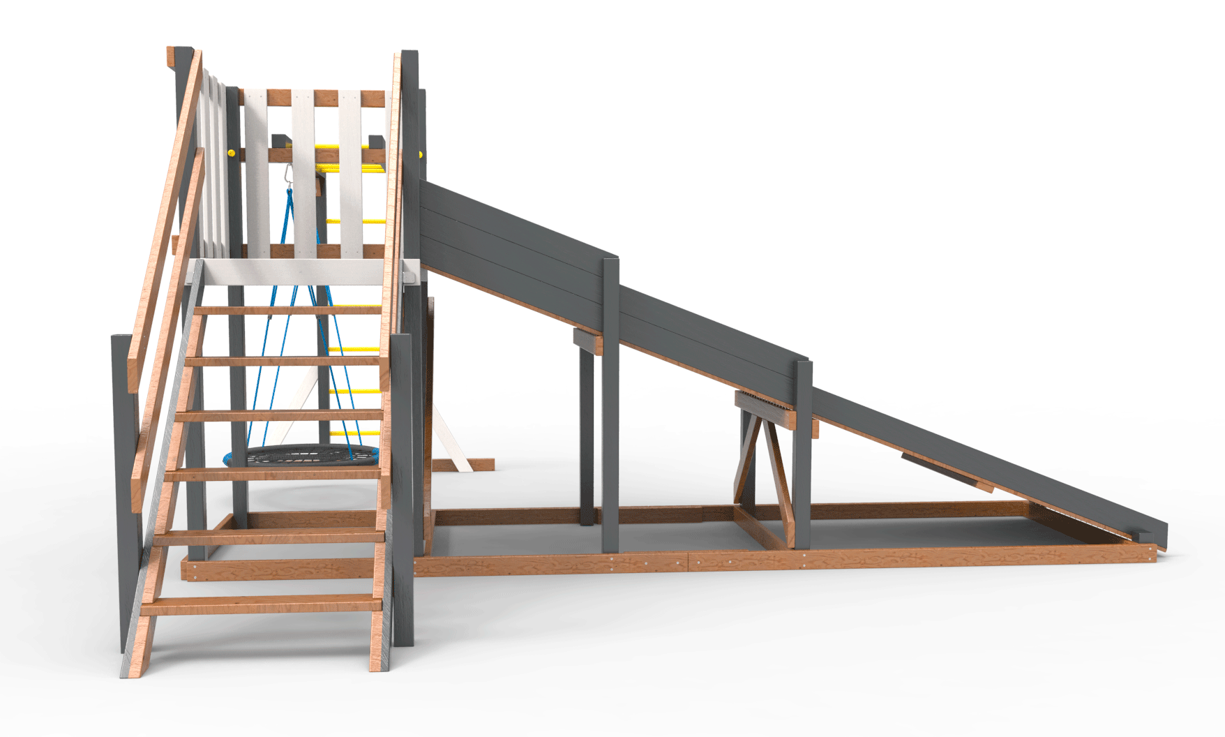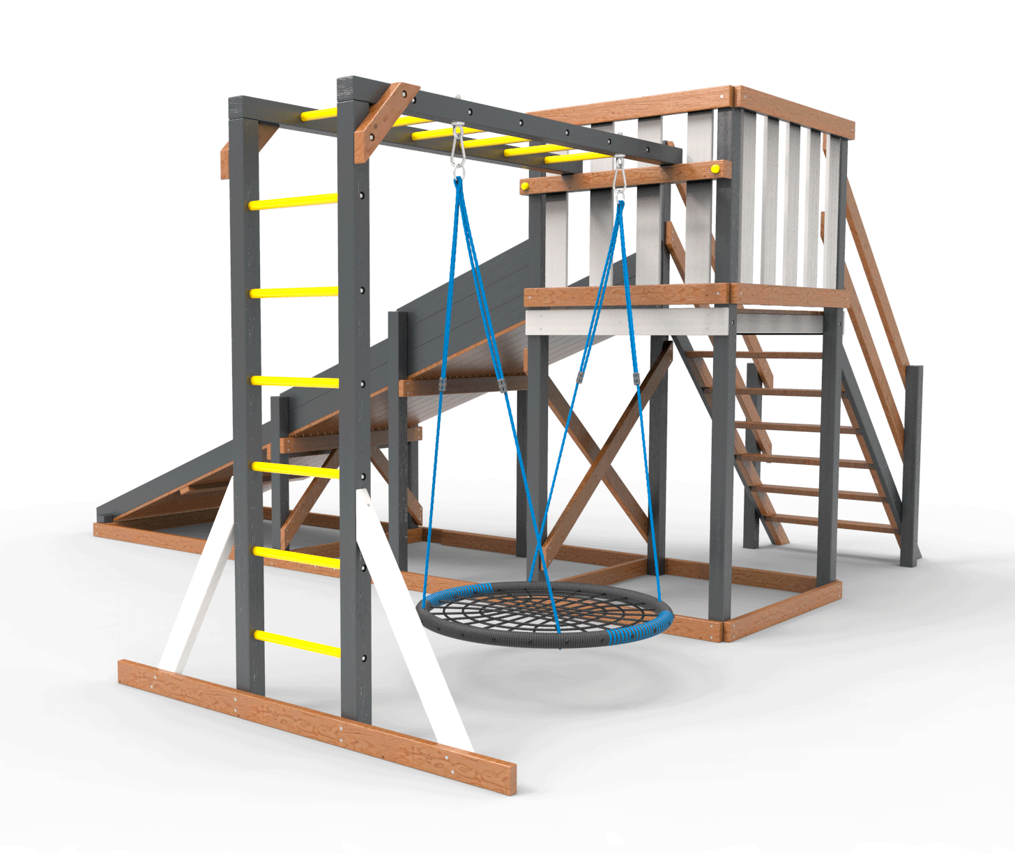 Обращаем Ваше внимание, что фактический цвет детской площадки может отличаться от представленных фото на сайте. Специфика окраски нетоксичными пропитками и красителями допускает отклонения в цветовой гамме отгружаемых изделий. Также обратите внимание, что фактический цвет может отличаться из-за цветопередачи устройства на котором Вы смотрите фото.