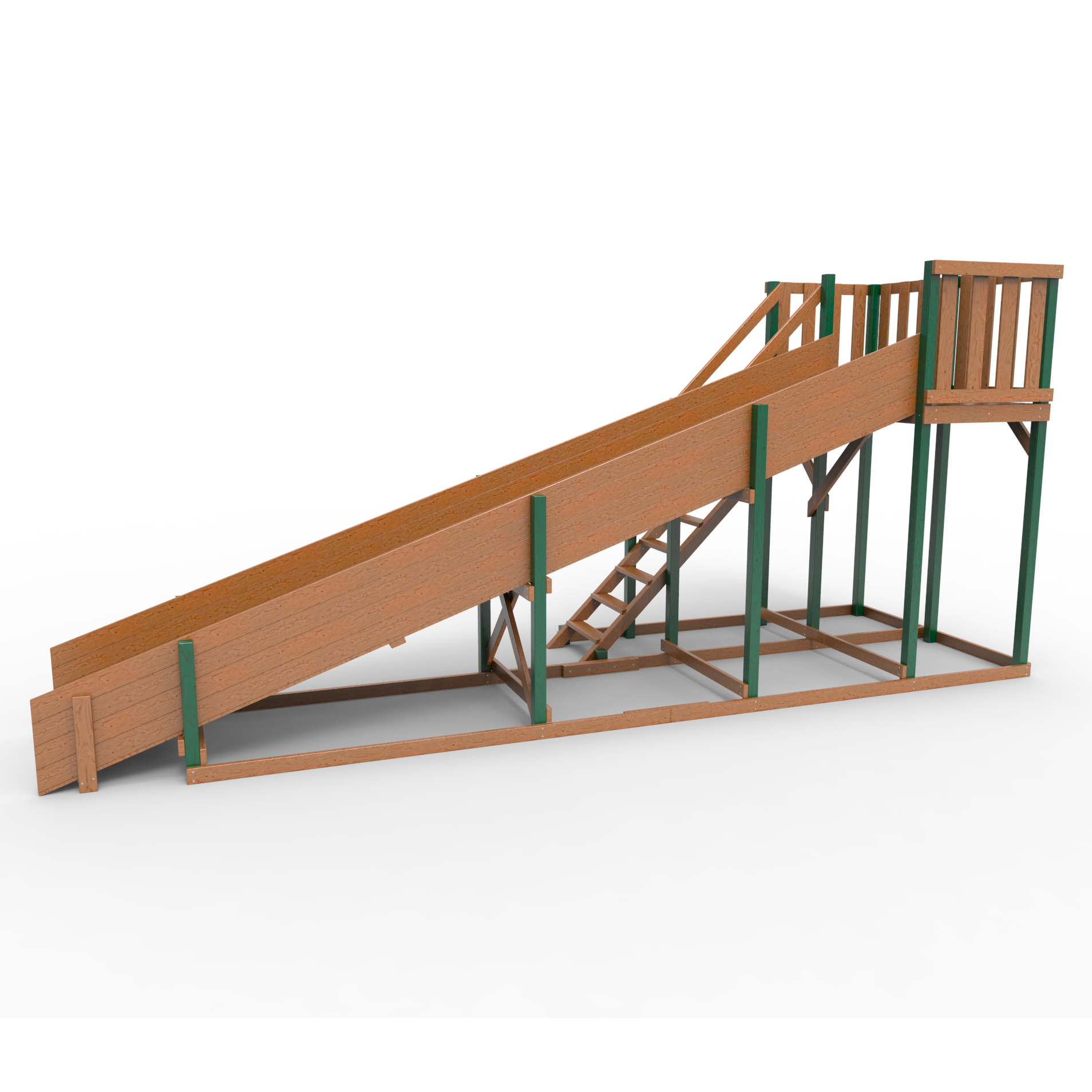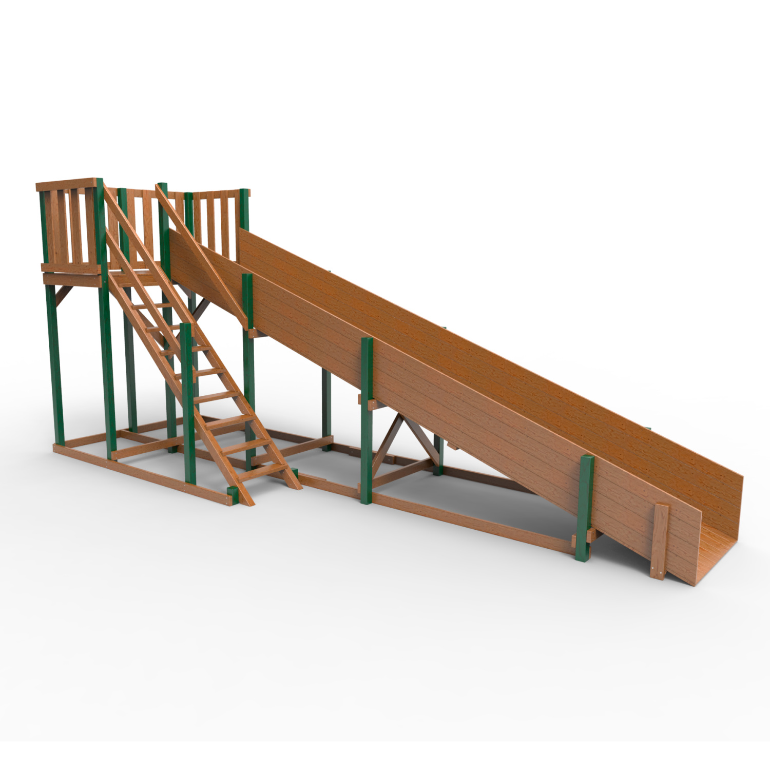 Обращаем Ваше внимание, что фактический цвет детской площадки может отличаться от представленных фото на сайте. Специфика окраски нетоксичными пропитками и красителями допускает отклонения в цветовой гамме отгружаемых изделий. Также обратите внимание, что фактический цвет может отличаться из-за цветопередачи устройства на котором Вы смотрите фото.
