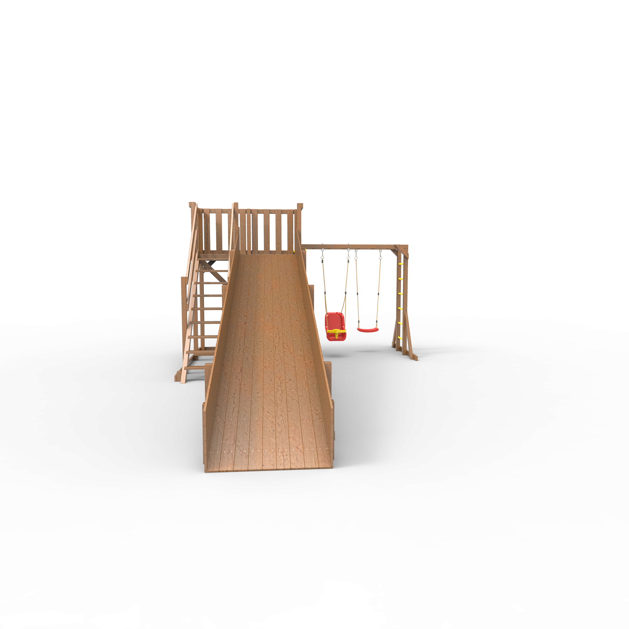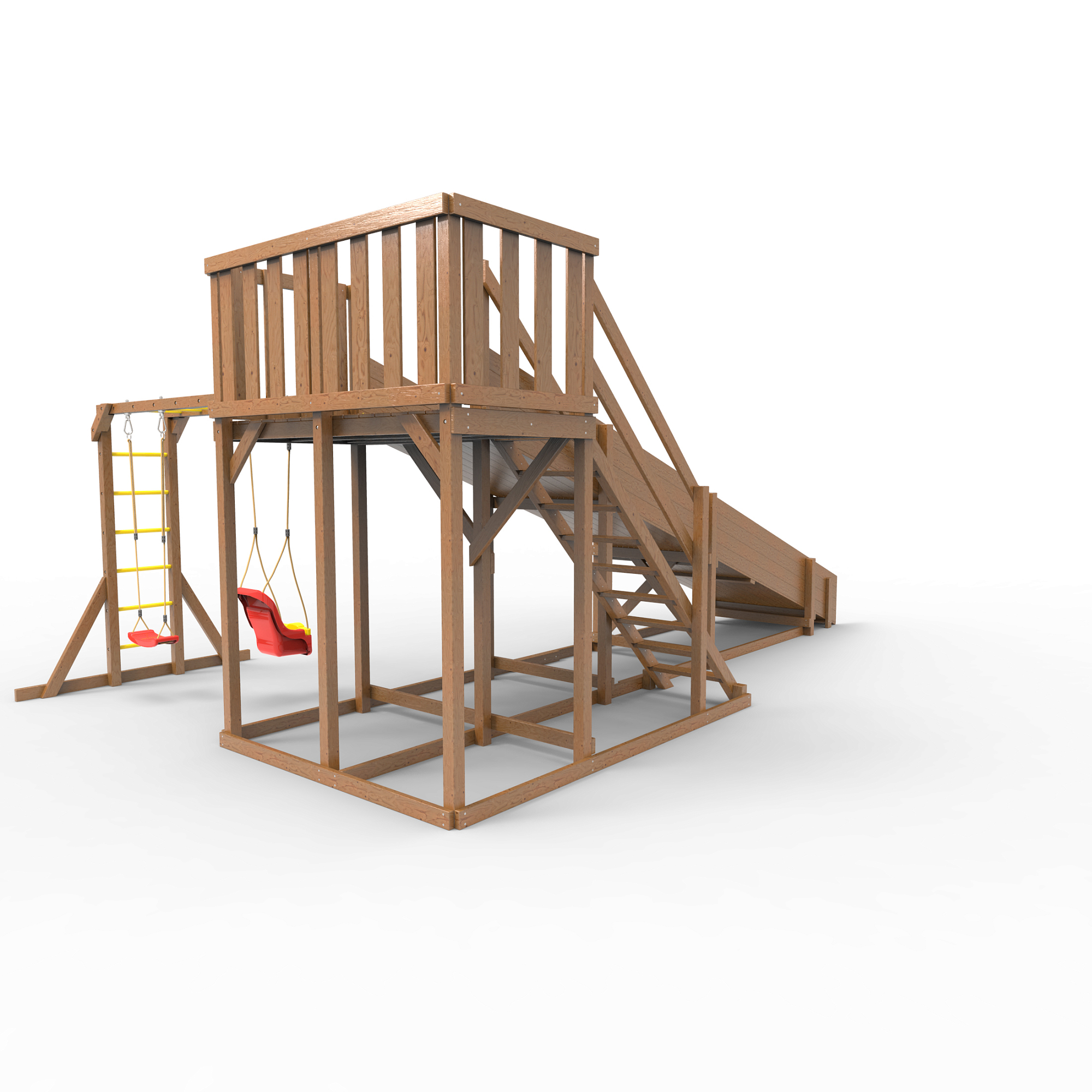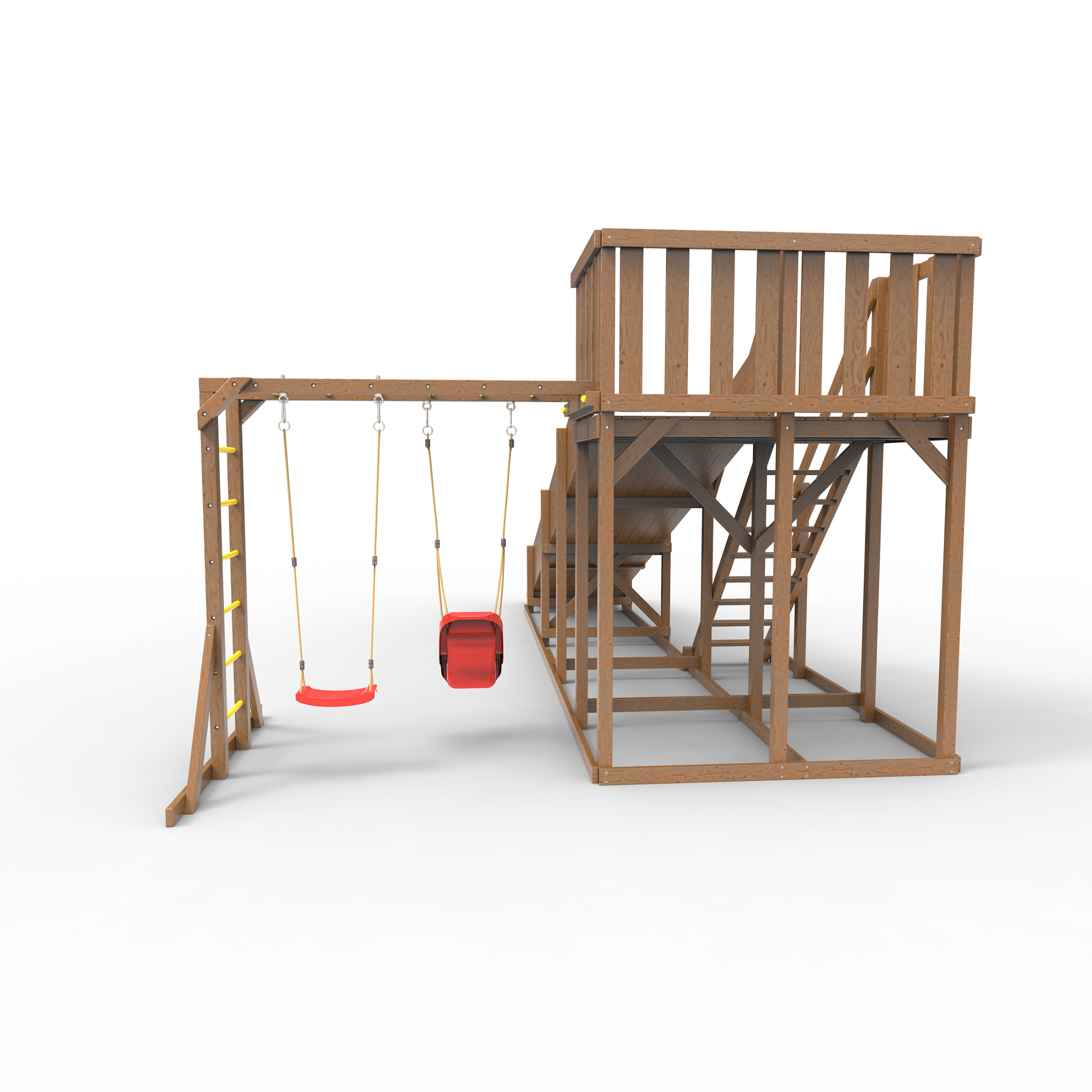 Обращаем Ваше внимание, что фактический цвет детской площадки может отличаться от представленных фото на сайте. Специфика окраски нетоксичными пропитками и красителями допускает отклонения в цветовой гамме отгружаемых изделий. Также обратите внимание, что фактический цвет может отличаться из-за цветопередачи устройства на котором Вы смотрите фото.