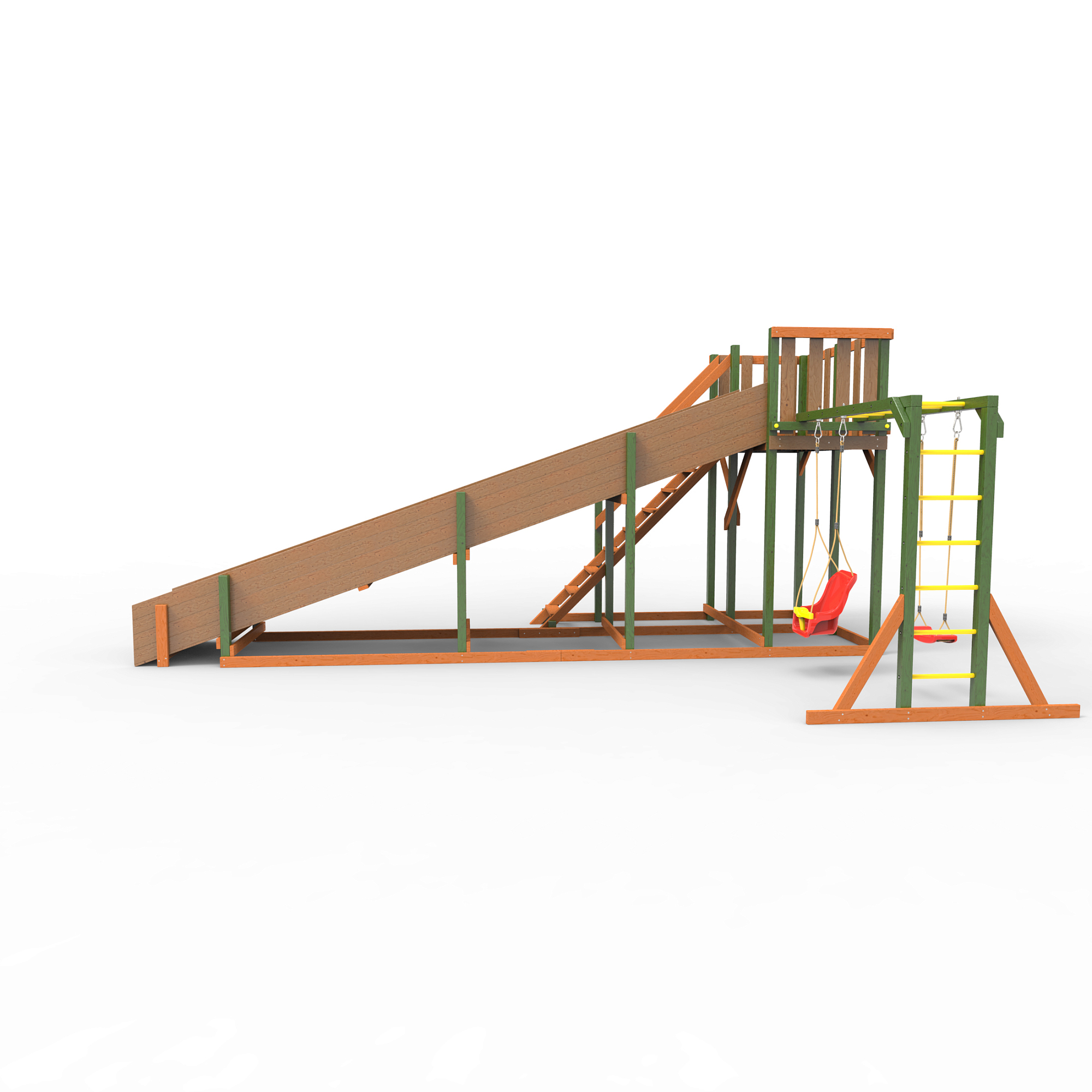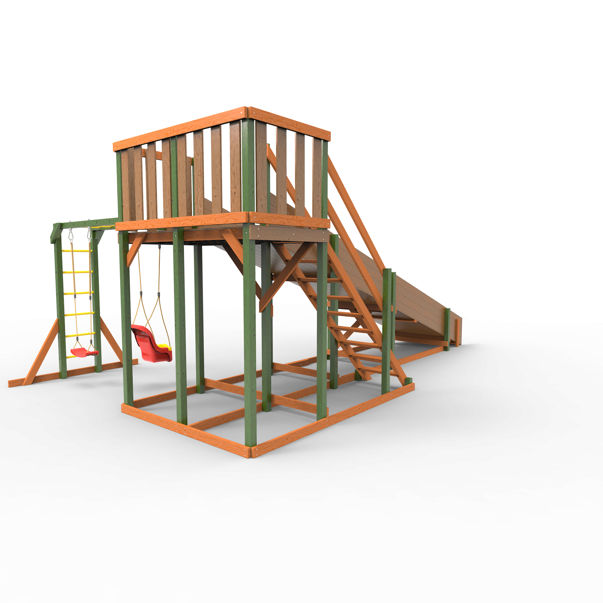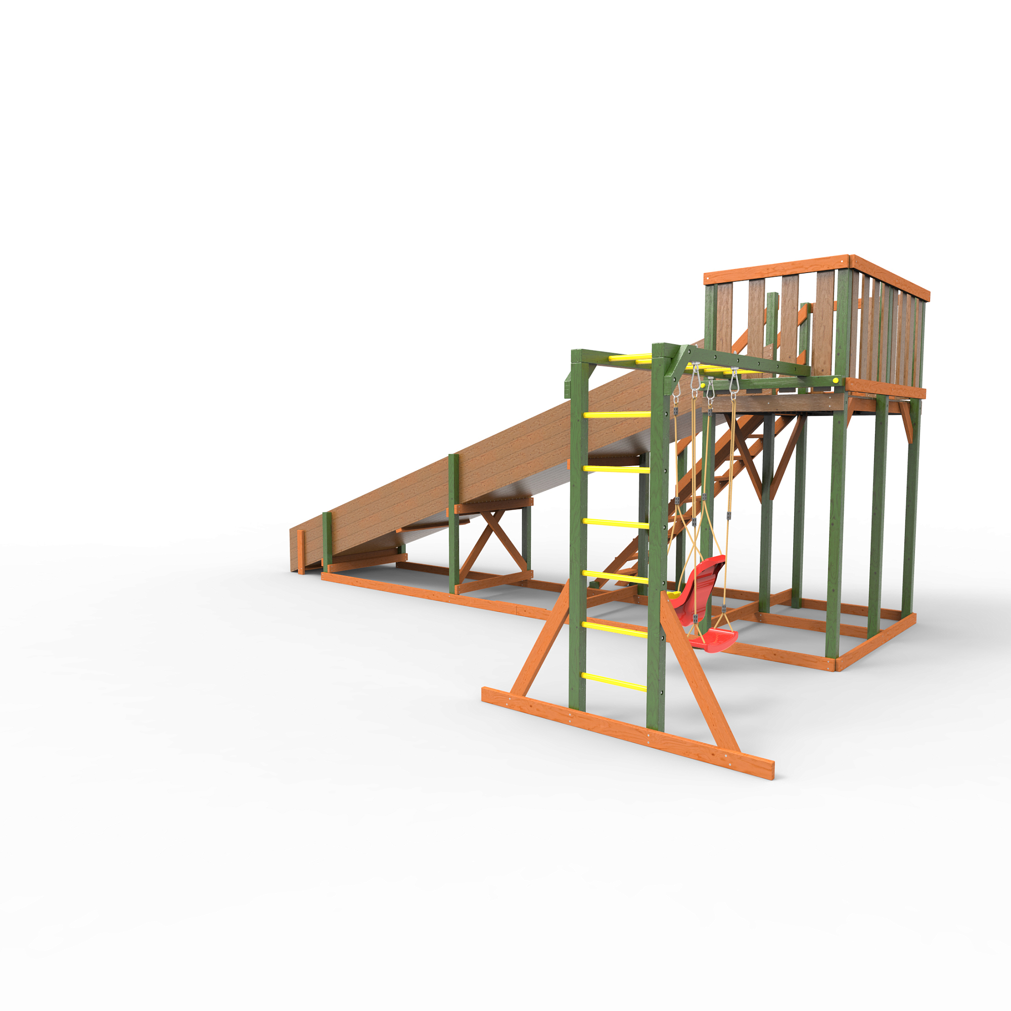 Обращаем Ваше внимание, что фактический цвет детской площадки может отличаться от представленных фото на сайте. Специфика окраски нетоксичными пропитками и красителями допускает отклонения в цветовой гамме отгружаемых изделий. Также обратите внимание, что фактический цвет может отличаться из-за цветопередачи устройства на котором Вы смотрите фото.