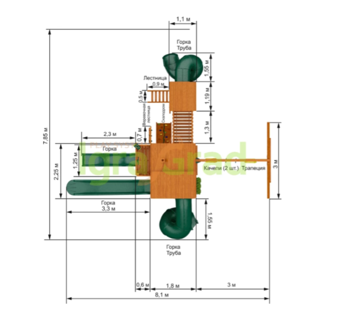 Детская площадка "IgraGrad Великан 3 (Макси) мод.2" включает: