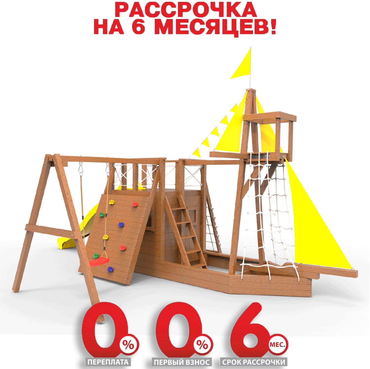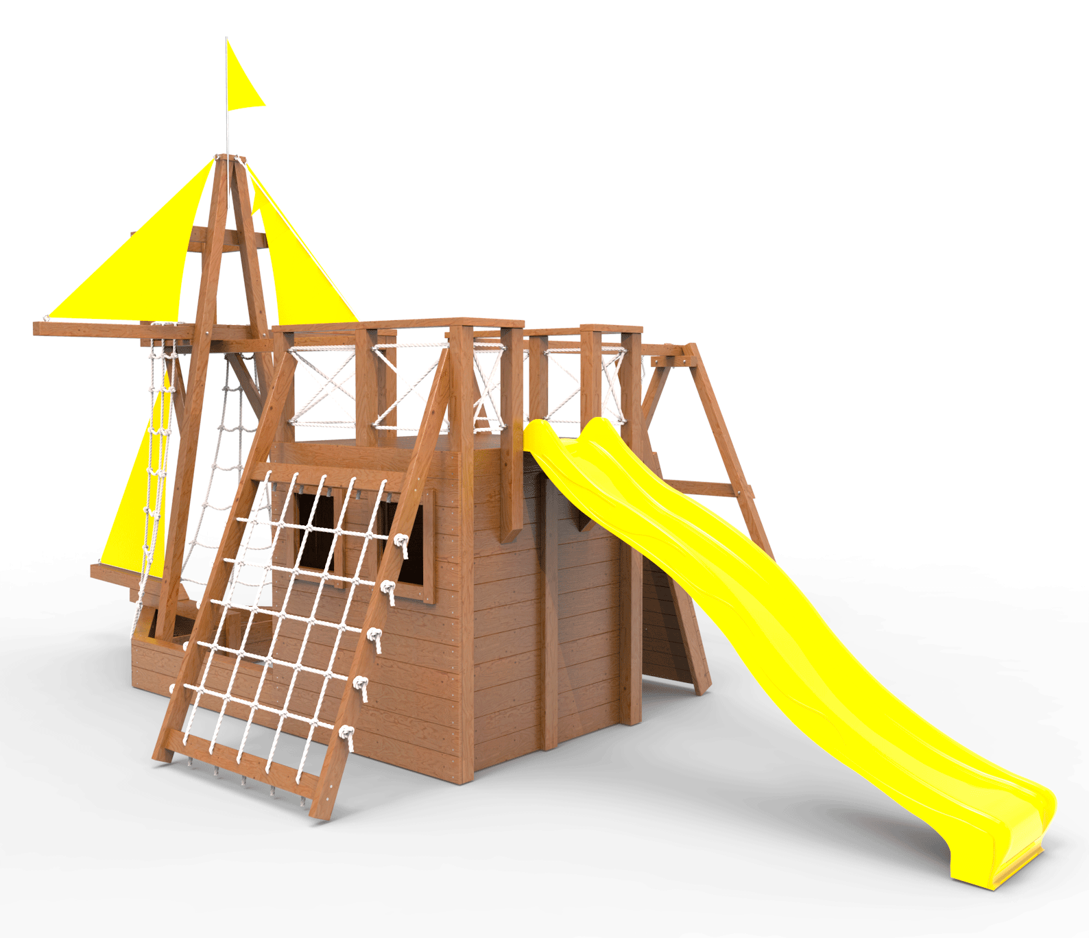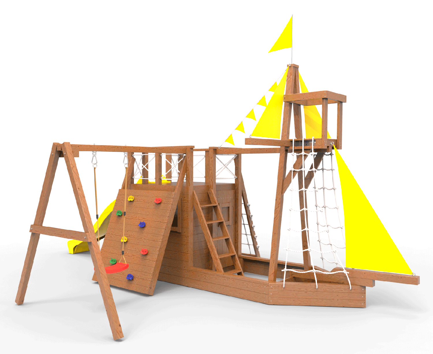 Большой корабль под настоящими парусами умчит вашего ребенка в мир его фантазий, где можно найти клад на островах, посетить невиданные страны, подружиться с необычными морскими обитателями. Такое чудо увлечет любого малыша! А благодаря тому, что в комплектацию «Корабля Океан» входят и классические элементы детских площадок: горка, качели, песочница, скалодром, сеть для лазания и домик – игры будут разнообразнее и полезнее.