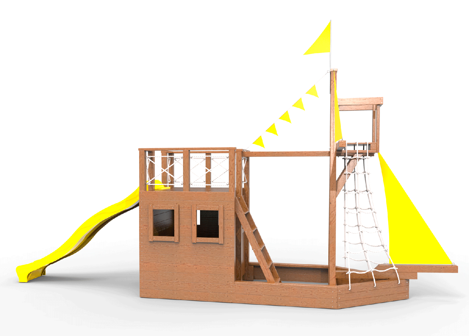 Только представьте корабль с парусами, наполняемыми ветром, с настоящей смотровой площадкой, штурвалом и уютной каютой - и все это в распоряжении вашего маленького путешественника. С такой площадкой малышу никогда не будет скучно, будь он пиратом, отважным капитаном или милой принцессой. Площадь корабля и его конструкция позволяет разыгрывать бесчисленное множество сценариев игр, а также Вы легко сможете дополнить детскую площадку спортивными и игровыми элементами, чтобы малышу стало еще веселее.