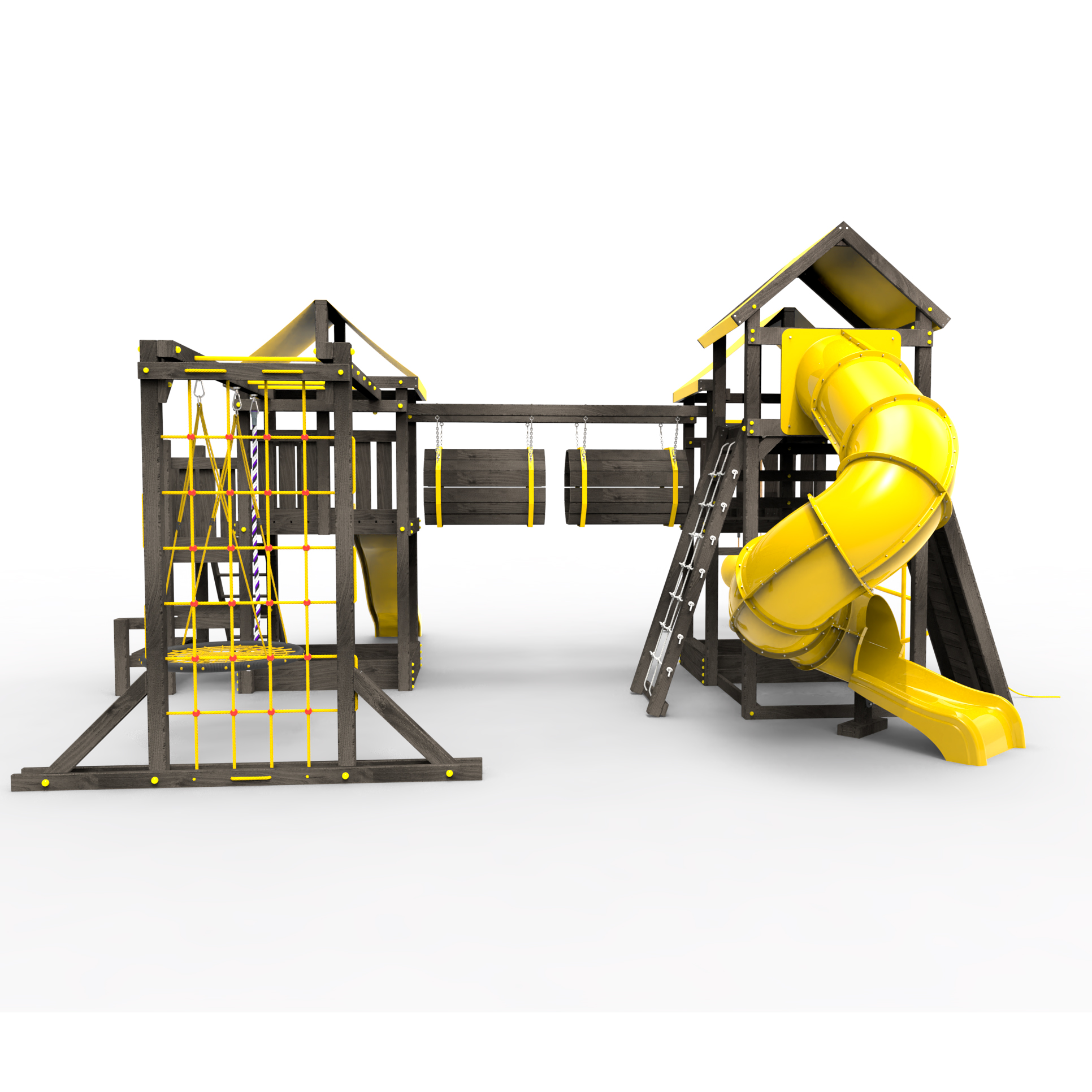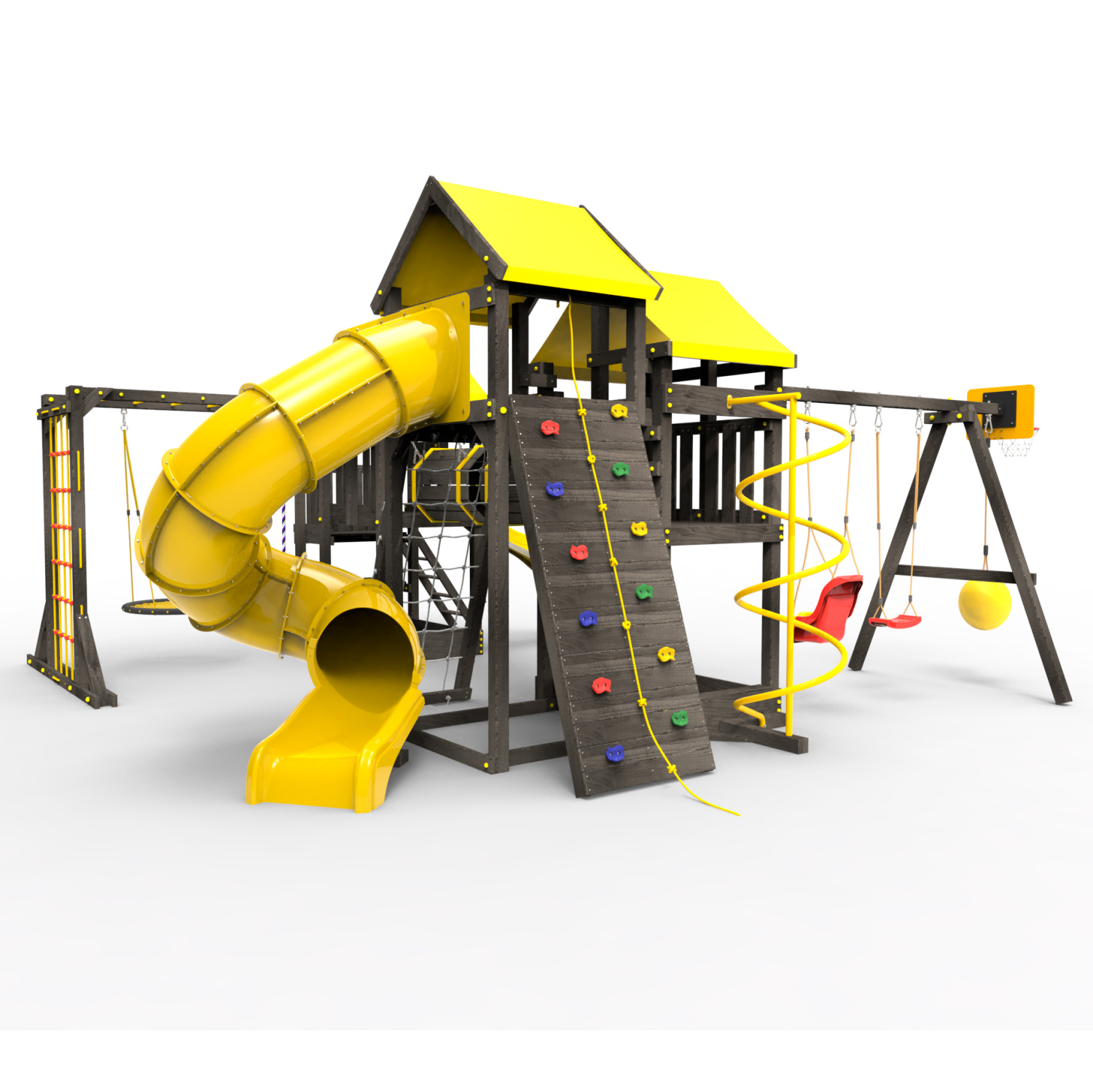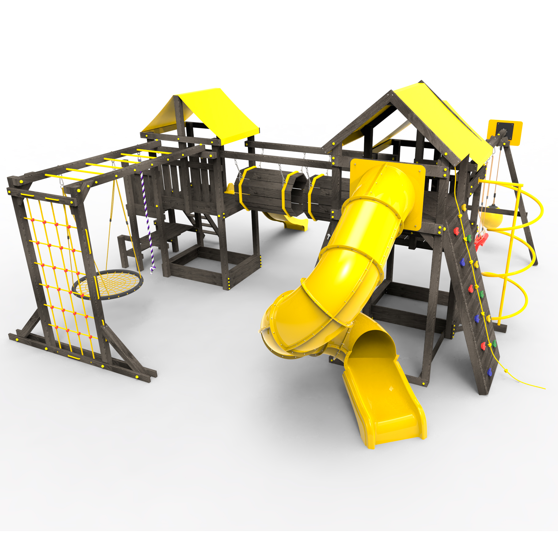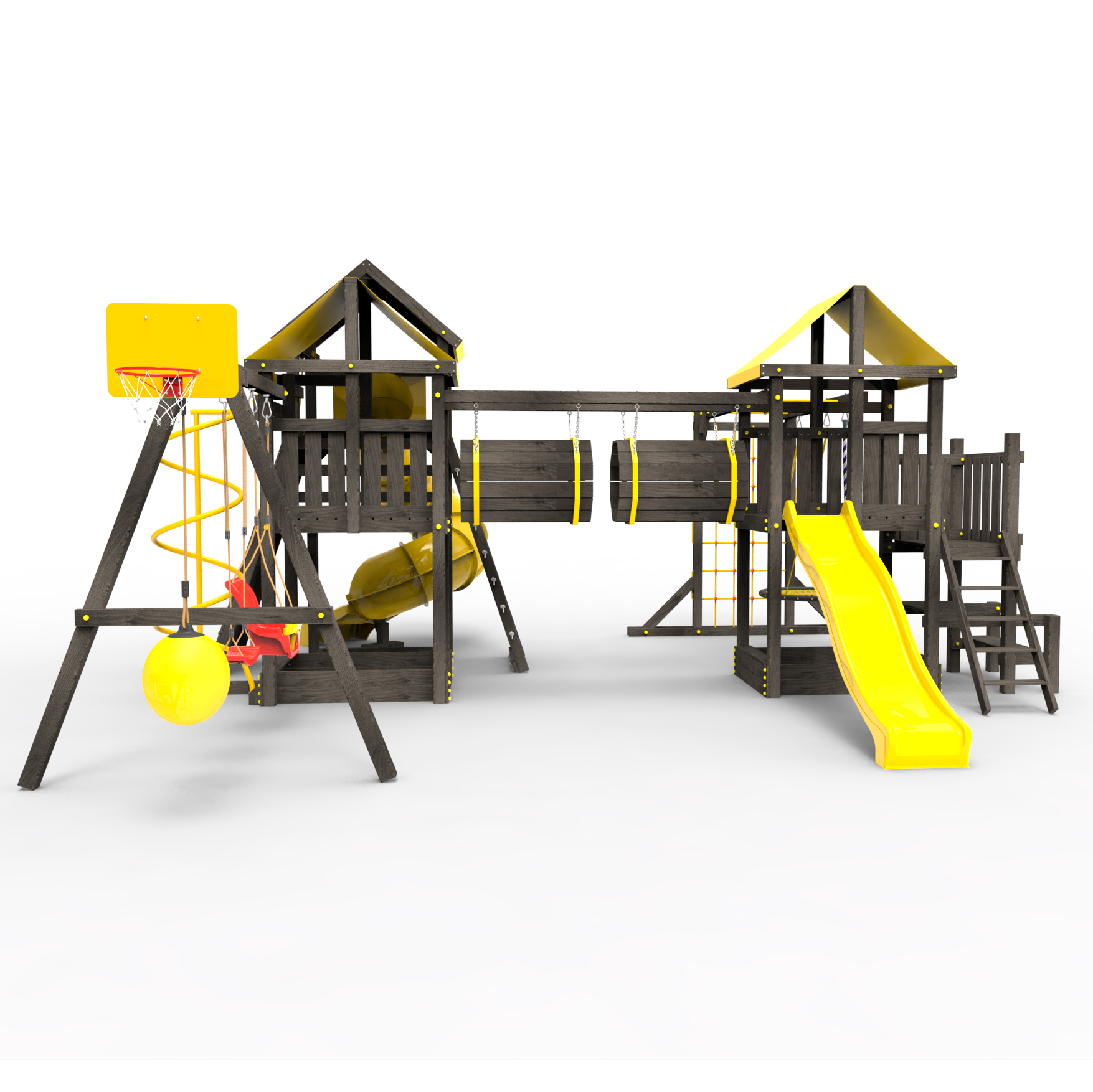 Два домика|Песочница|Лестница|Шторм-трап|Скалодром|Рукоход|Шведская стенка|Турник|Руфер|Баскетбольная корзина|Мостик|Горка|Спираль|Волна|Сеть для лазания|Качели |