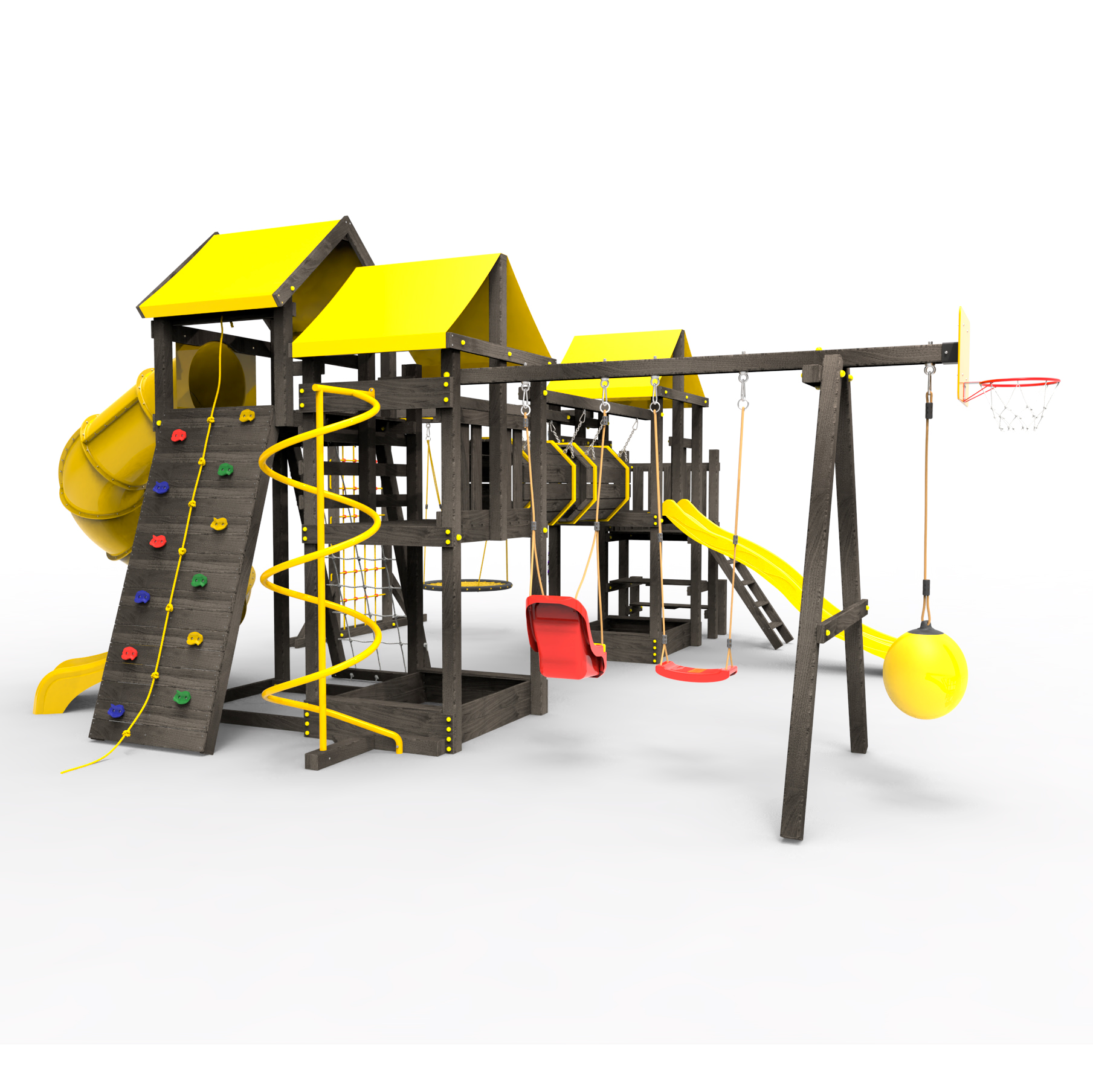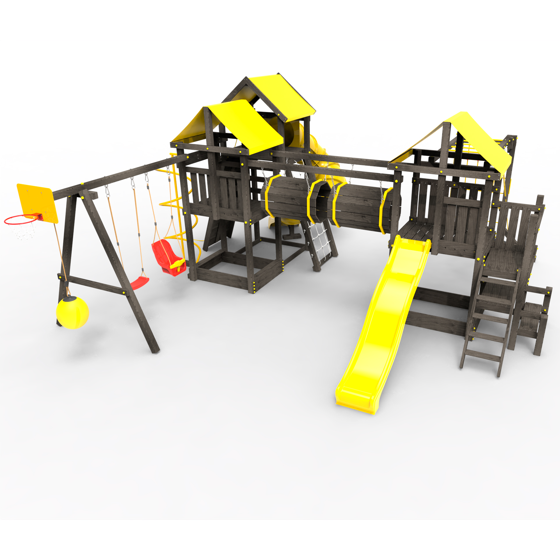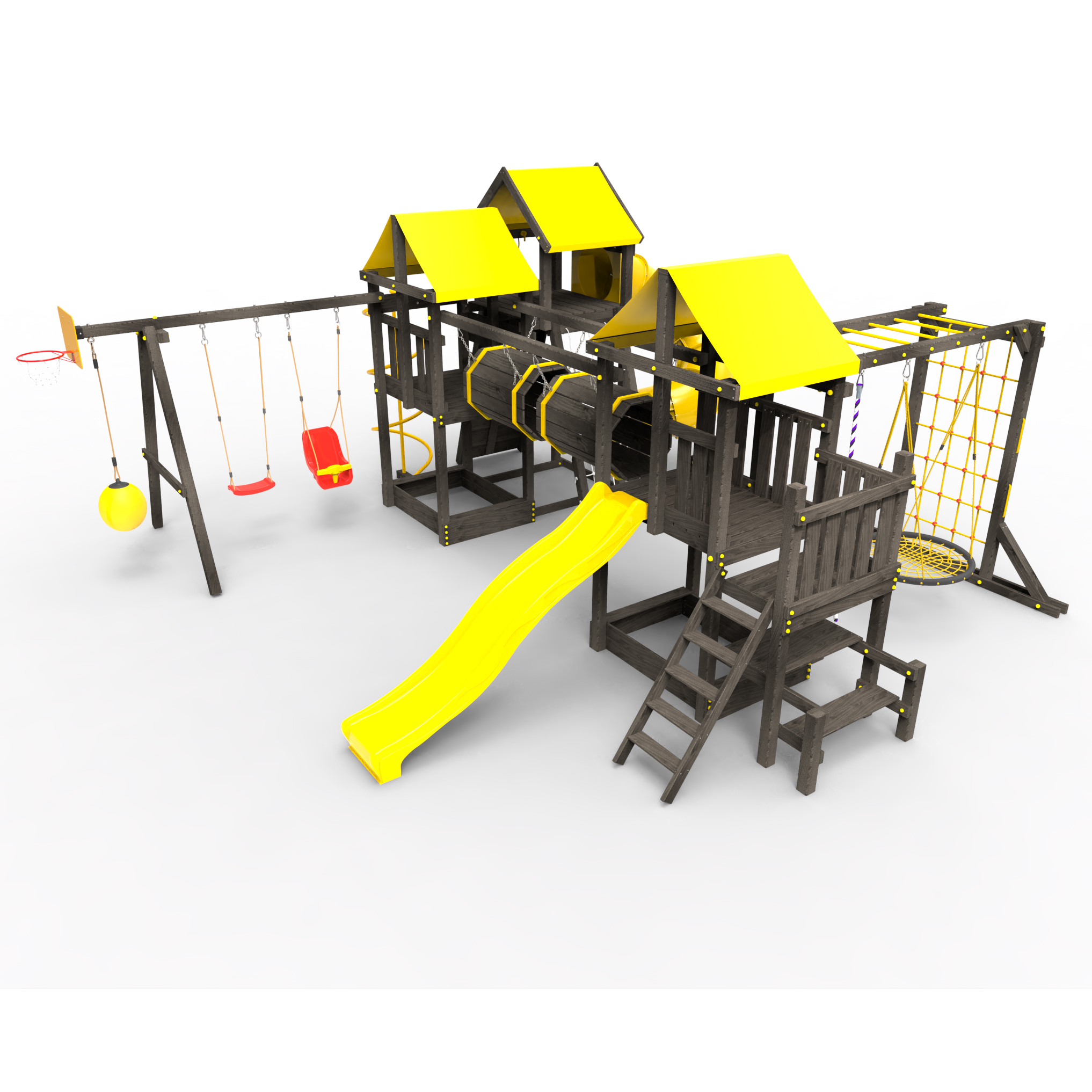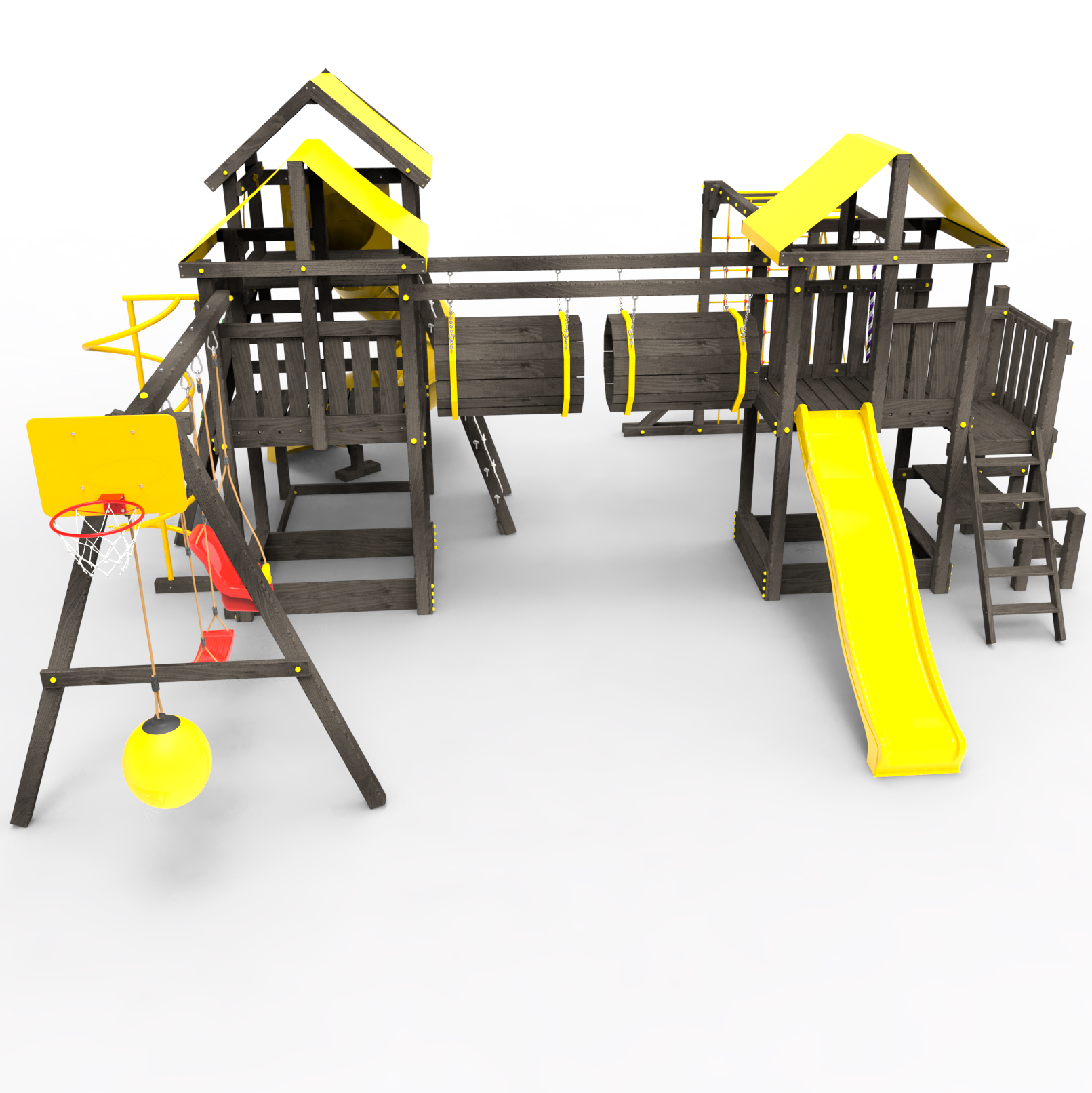 Два домика|Песочница|Лестница|Шторм-трап|Скалодром|Рукоход|Шведская стенка|Турник|Руфер|Баскетбольная корзина|Мостик|Горка|Спираль|Волна|Сеть для лазания|Качели |