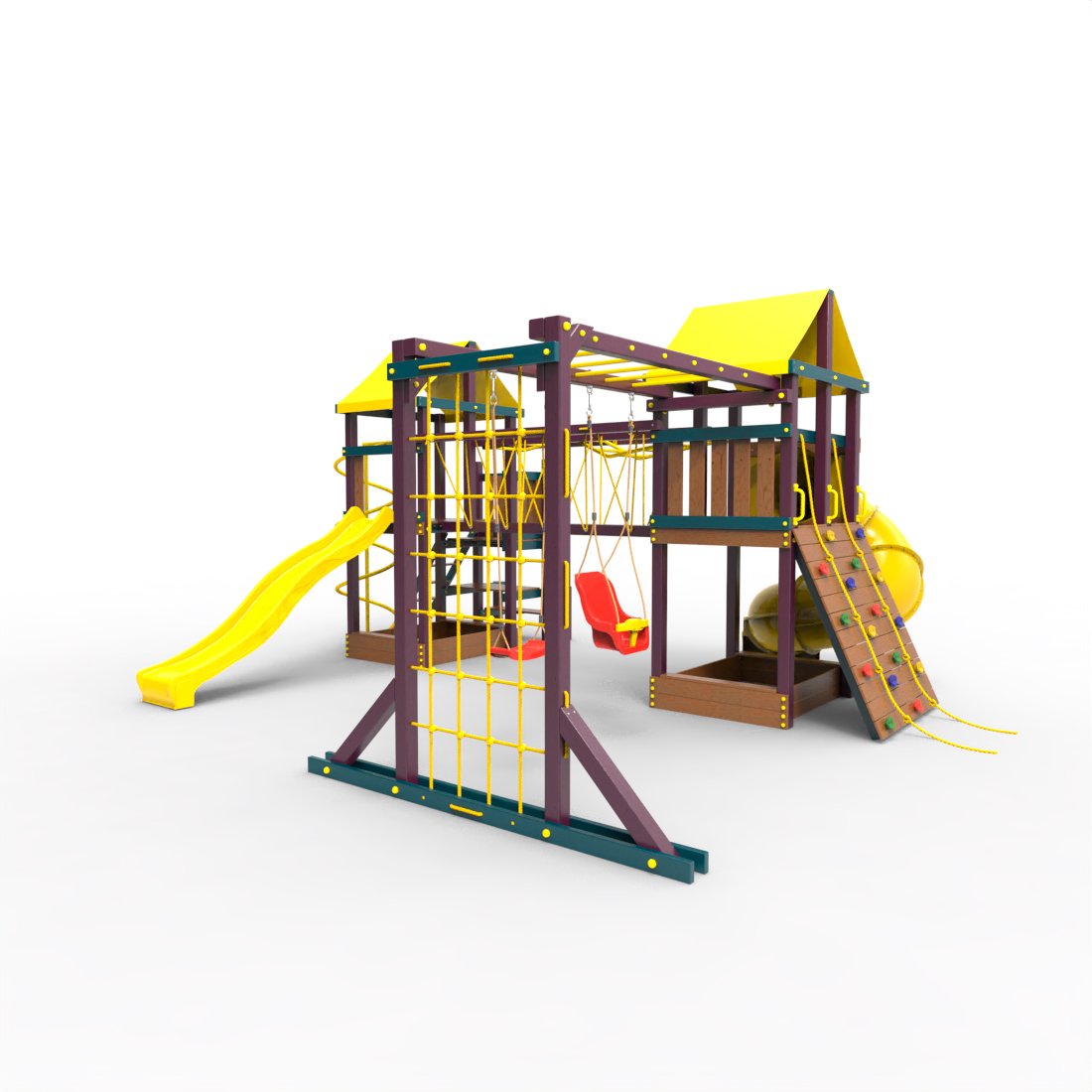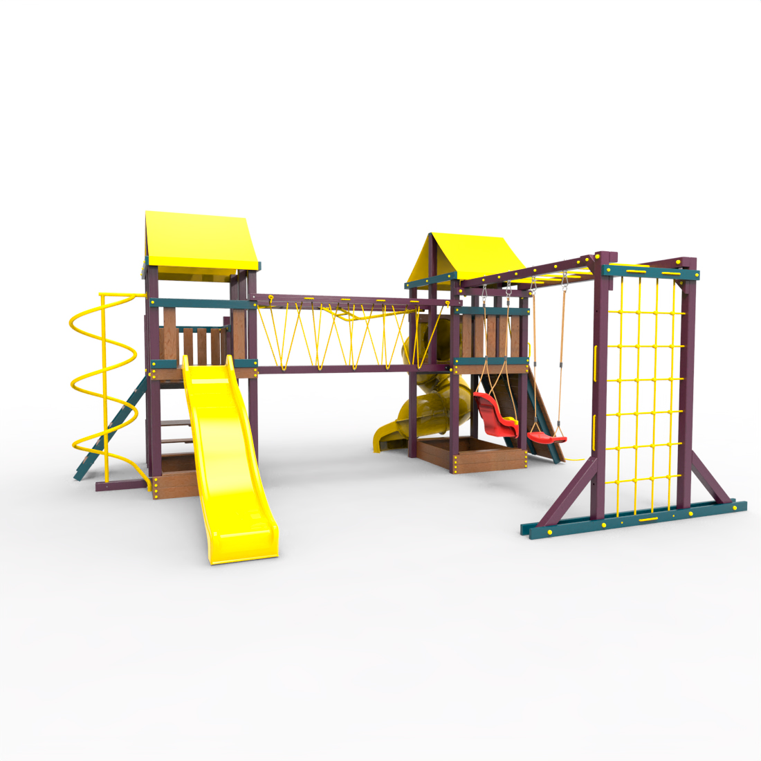 | Комплектация | Два домика|Песочница|Лестница|Шторм-трап|Скалодром|Рукоход|Руфер|Балкон|Столик с лавочками|Подвесной мост|Горка|Спираль|Сеть для лазания|Качели|Заливная горка|ЗигЗаг|Переправа |
