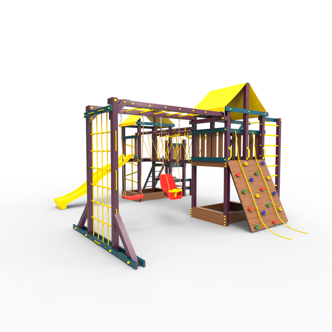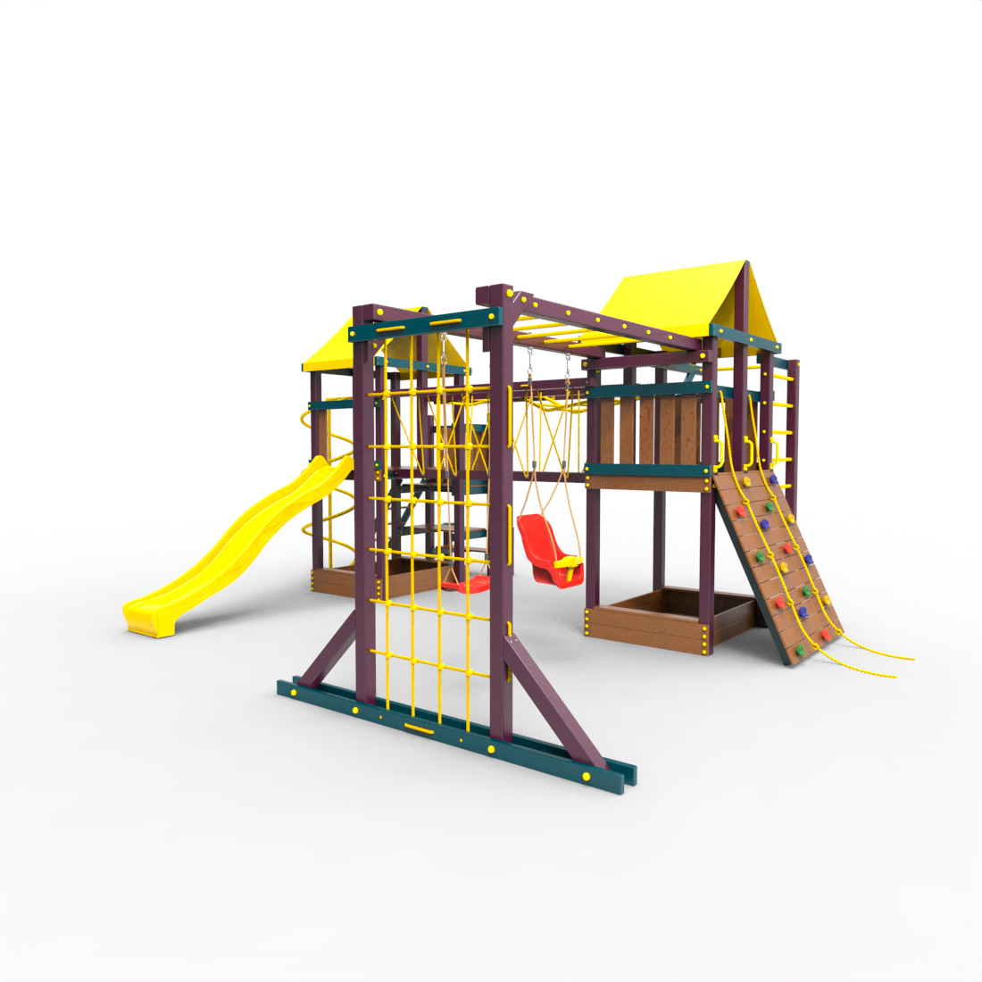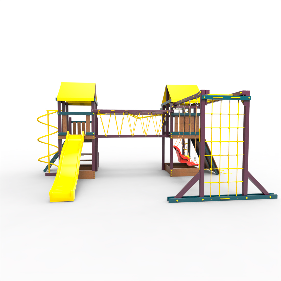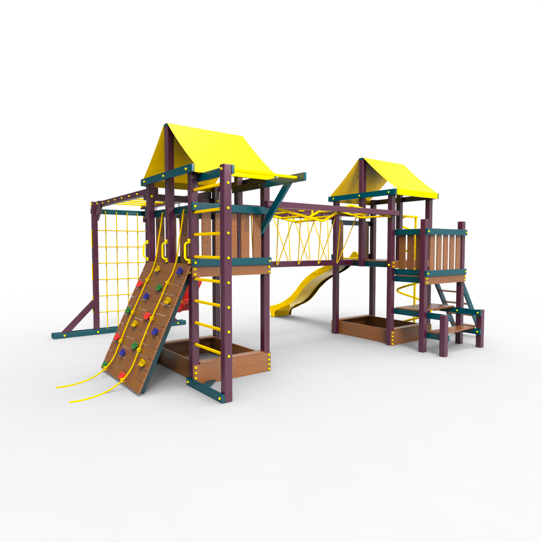 | Комплектация | Два домика|Песочница|Лестница|Шторм-трап|Скалодром|Рукоход|Руфер|Балкон|Столик с лавочками|Подвесной мост|Горка|Спираль|Сеть для лазания|Качели|Заливная горка|ЗигЗаг|Переправа |