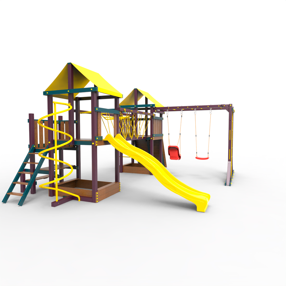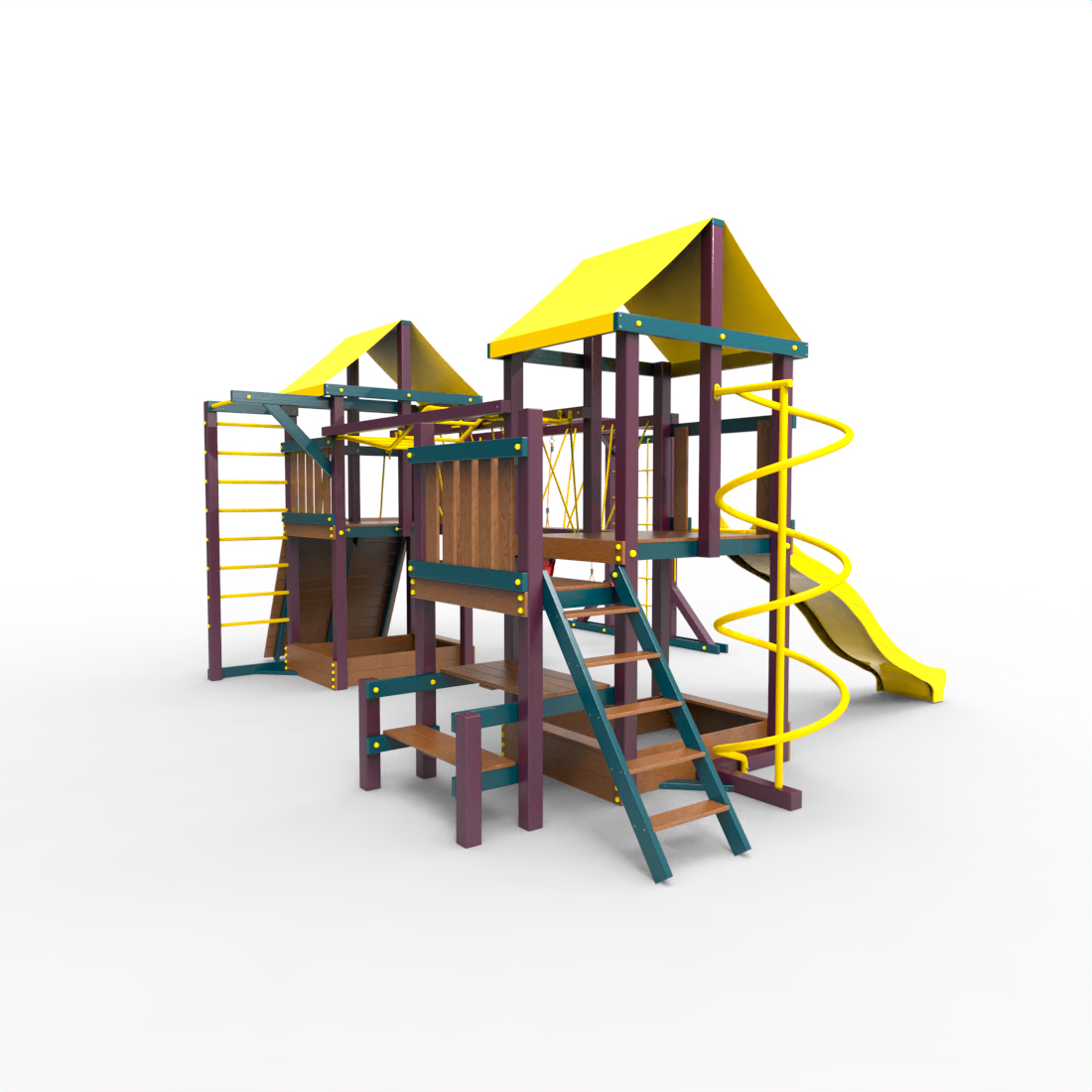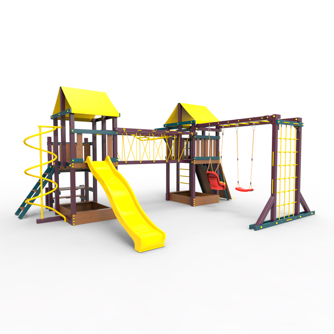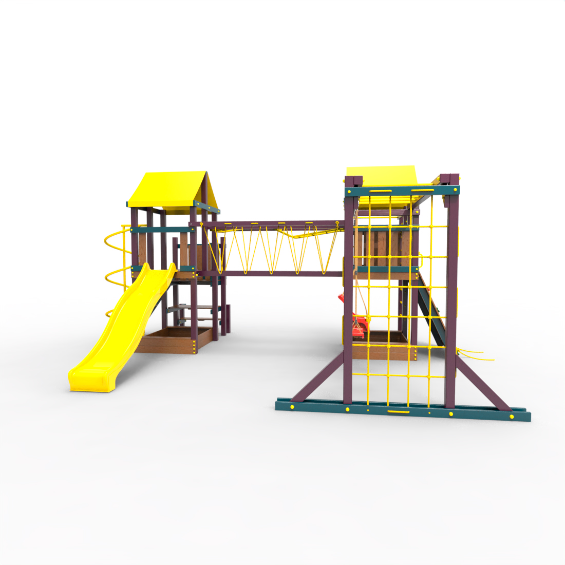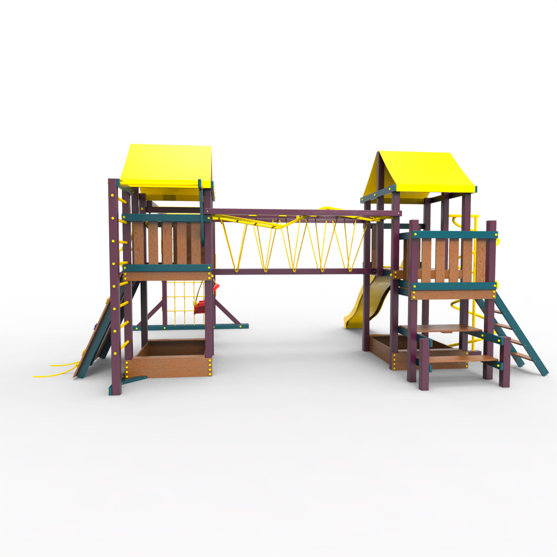 | Комплектация | Два домика|Песочница|Лестница|Шторм-трап|Скалодром|Рукоход|Руфер|Балкон|Столик с лавочками|Подвесной мост|Горка|Спираль|Сеть для лазания|Качели|Заливная горка|ЗигЗаг|Переправа |