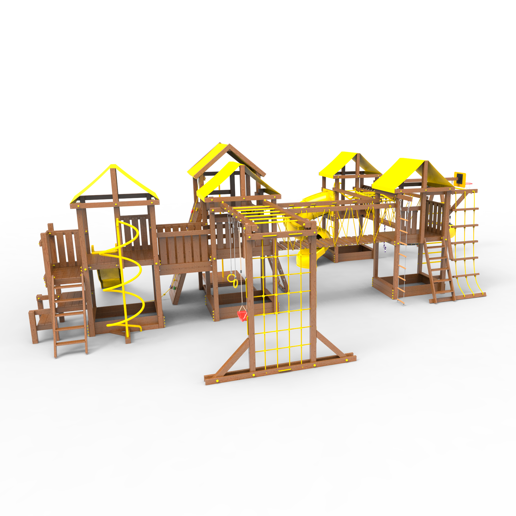 | Комплектация | Высокий домик|Два домика|Песочница|Лестница|Шторм-трап|Скалодром|Шведская стенка|Рукоход|Турник|Руфер|Балкон|Столик с лавочками|Баскетбольная корзина|Мостик|Подвесной мост|Горка|Винтовая труба|Спираль|Волна|Пожарный шест|Сеть для лазания|Качели|ЗигЗаг|Переправа |