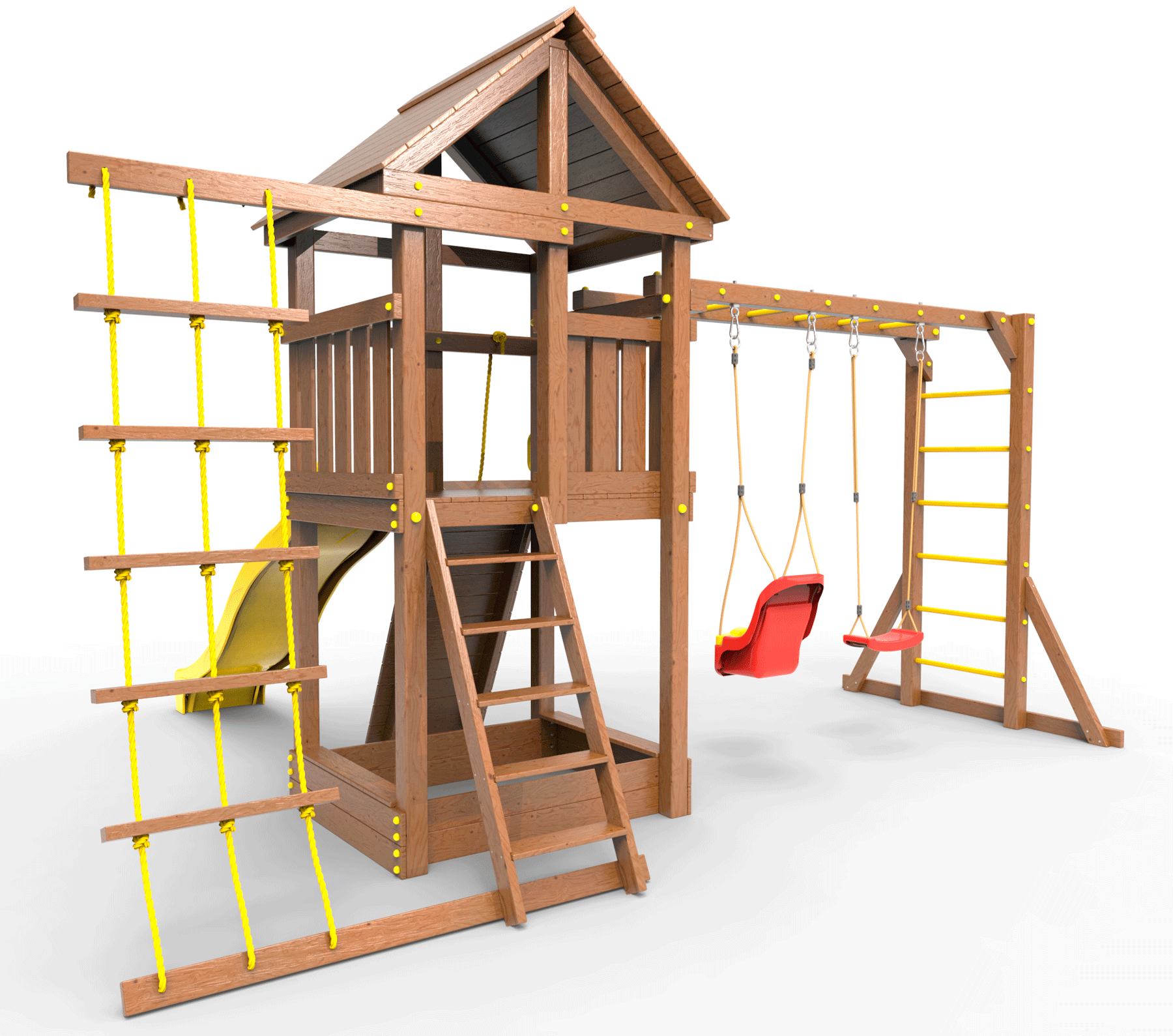 Обращаем Ваше внимание, что фактический цвет детской площадки может отличаться от представленных фото на сайте. Специфика окраски нетоксичными пропитками и красителями допускает отклонения в цветовой гамме отгружаемых изделий. Также обратите внимание, что фактический цвет может отличаться из-за цветопередачи устройства на котором Вы смотрите фото.