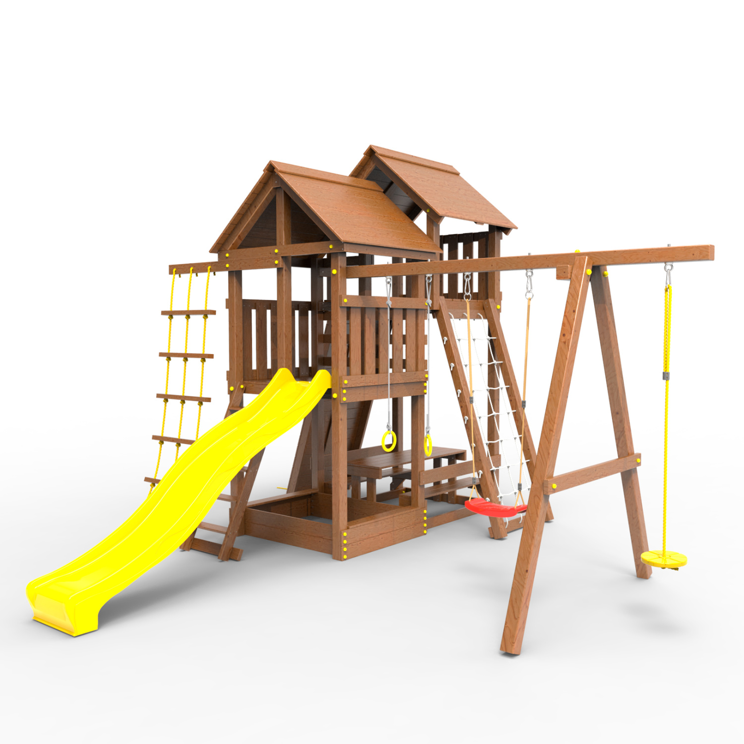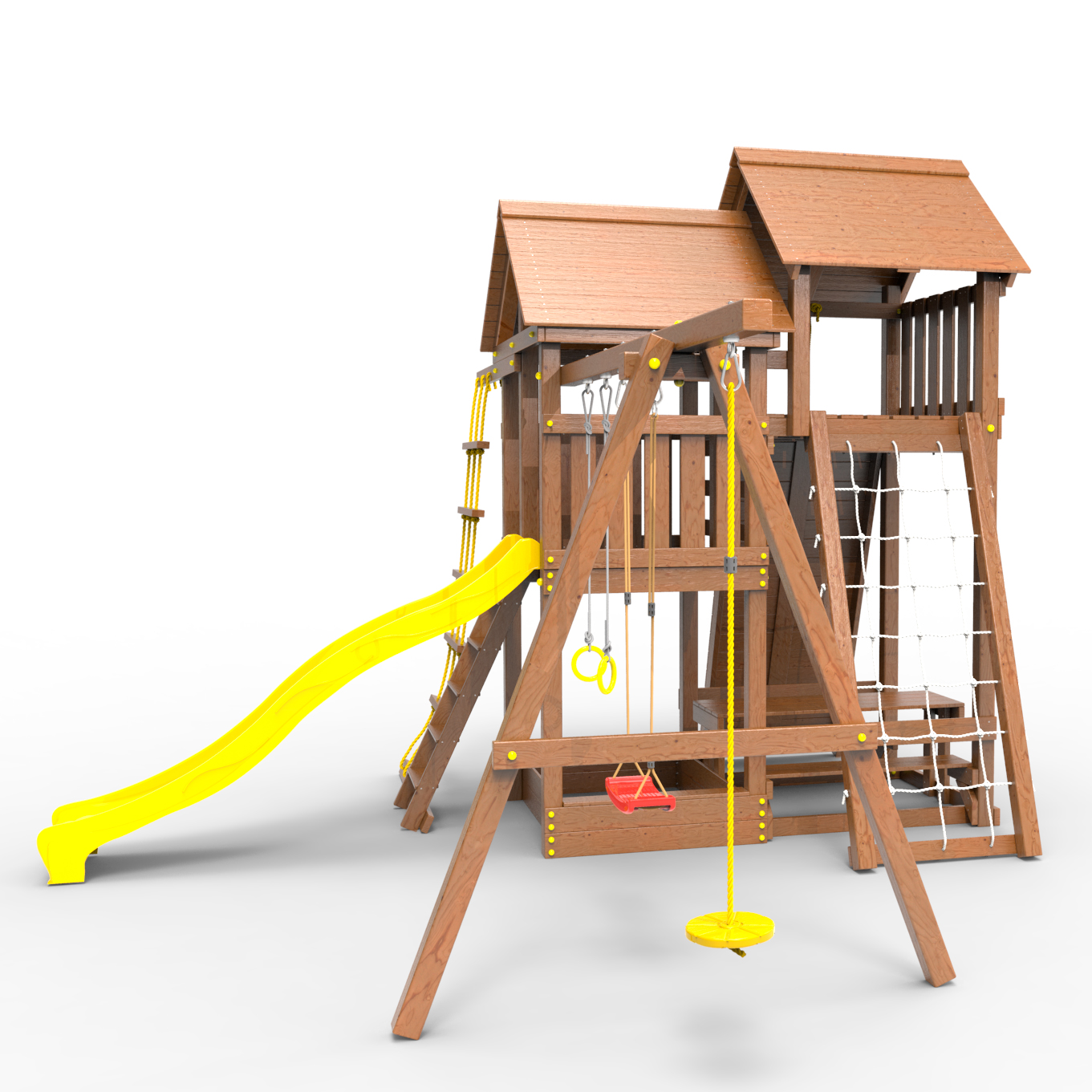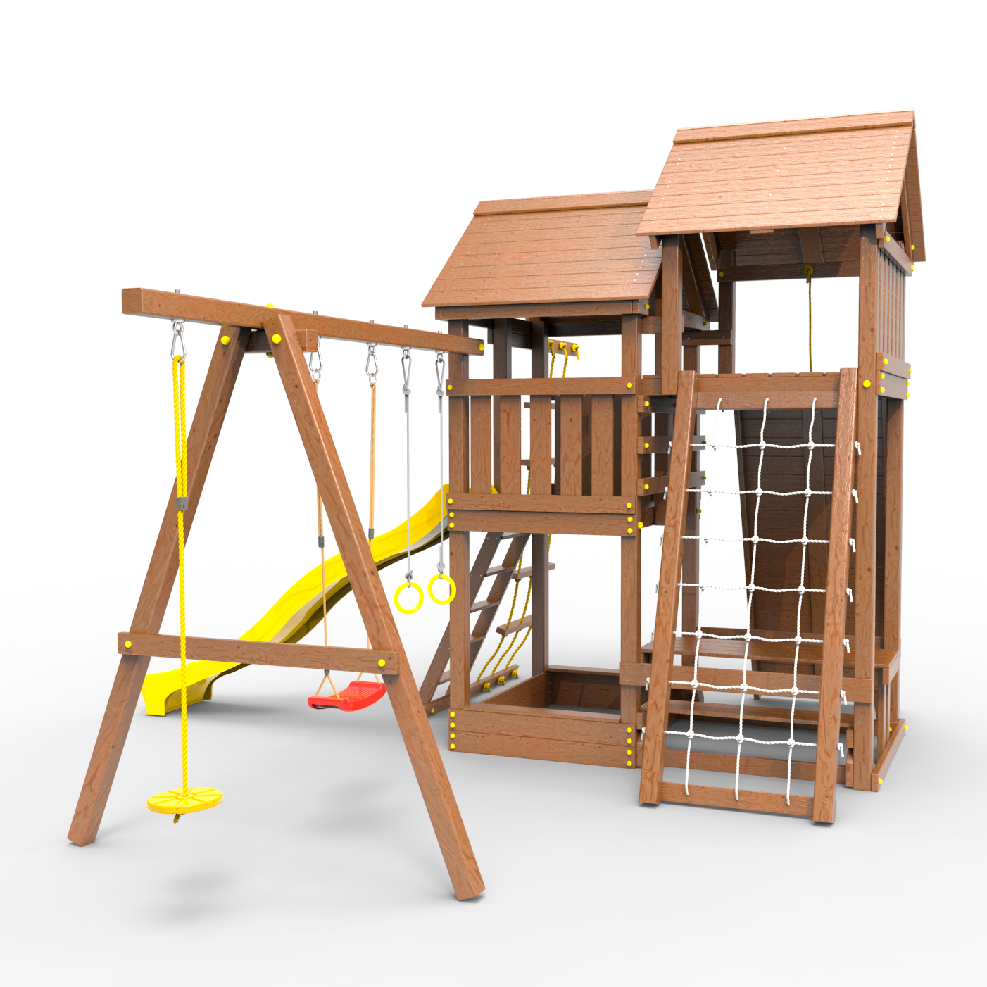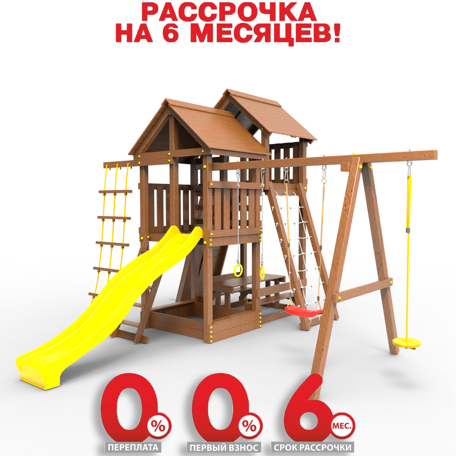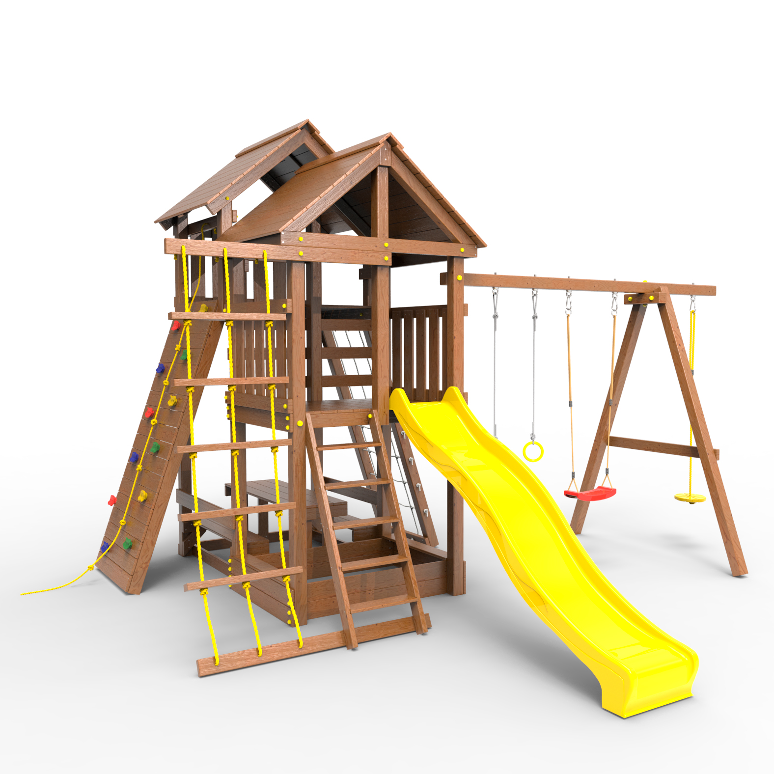 Обращаем Ваше внимание, что фактический цвет детской площадки может отличаться от представленных фото на сайте. Специфика окраски нетоксичными пропитками и красителями допускает отклонения в цветовой гамме отгружаемых изделий. Также обратите внимание, что фактический цвет может отличаться из-за цветопередачи устройства на котором Вы смотрите фото.