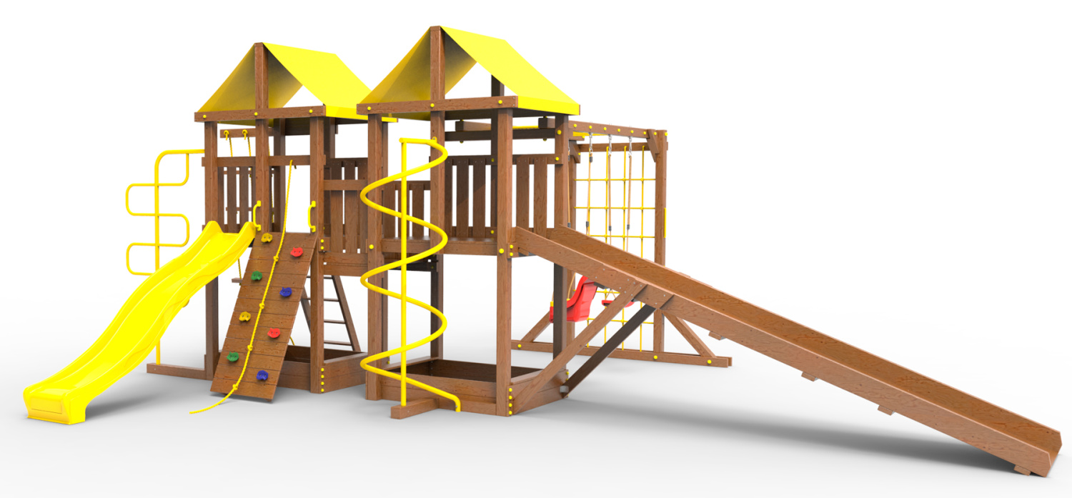 Обращаем Ваше внимание, что фактический цвет детской площадки может отличаться от представленных фото на сайте. Специфика окраски нетоксичными пропитками и красителями допускает отклонения в цветовой гамме отгружаемых изделий. Также обратите внимание, что фактический цвет может отличаться из-за цветопередачи устройства на котором Вы смотрите фото.