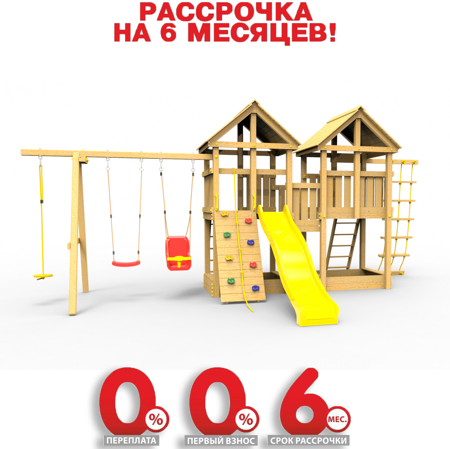 Обращаем Ваше внимание, что фактический цвет детской площадки может отличаться от представленных фото на сайте. Специфика окраски нетоксичными пропитками и красителями допускает отклонения в цветовой гамме отгружаемых изделий. Также обратите внимание, что фактический цвет может отличаться из-за цветопередачи устройства на котором Вы смотрите фото.