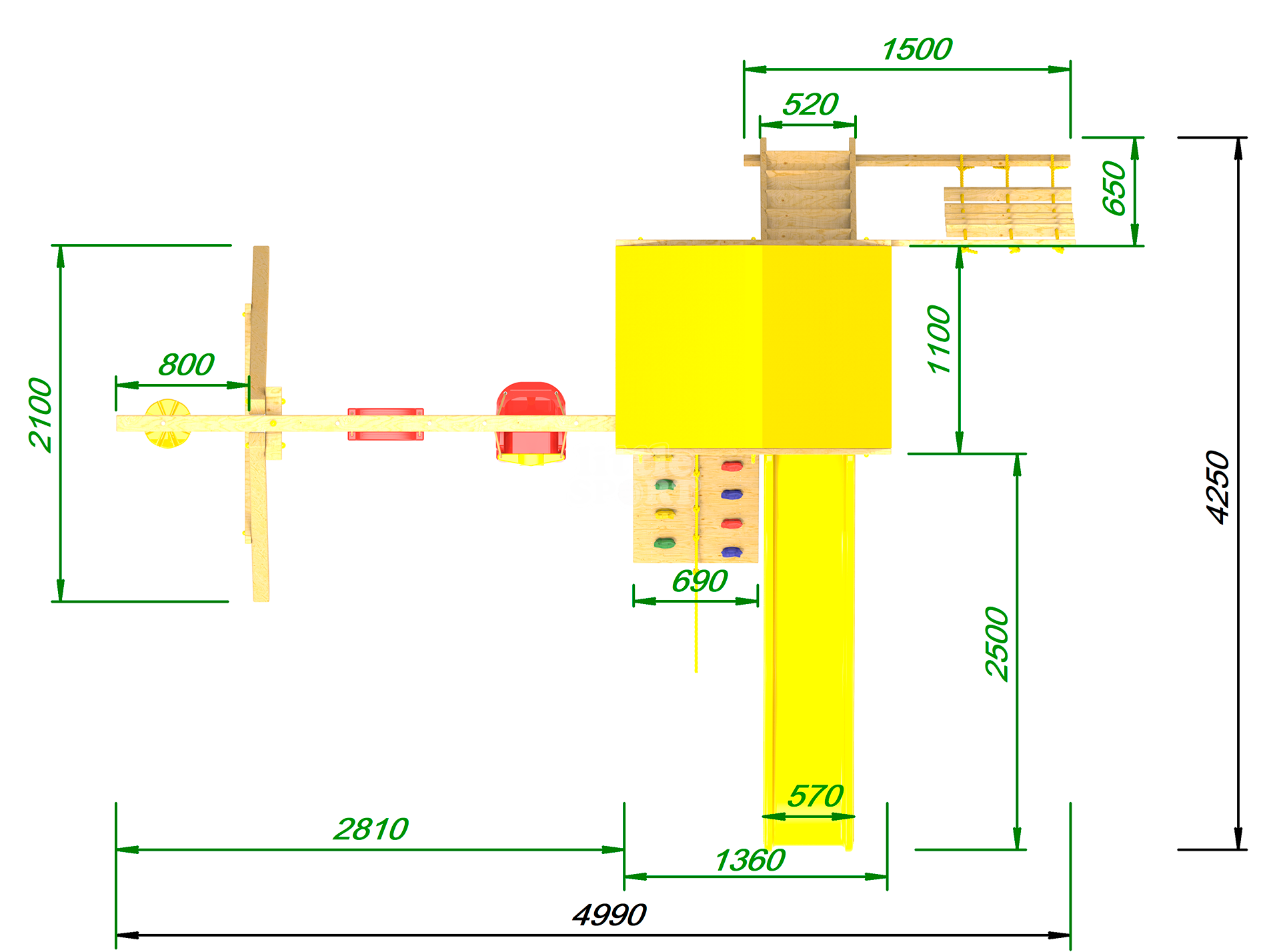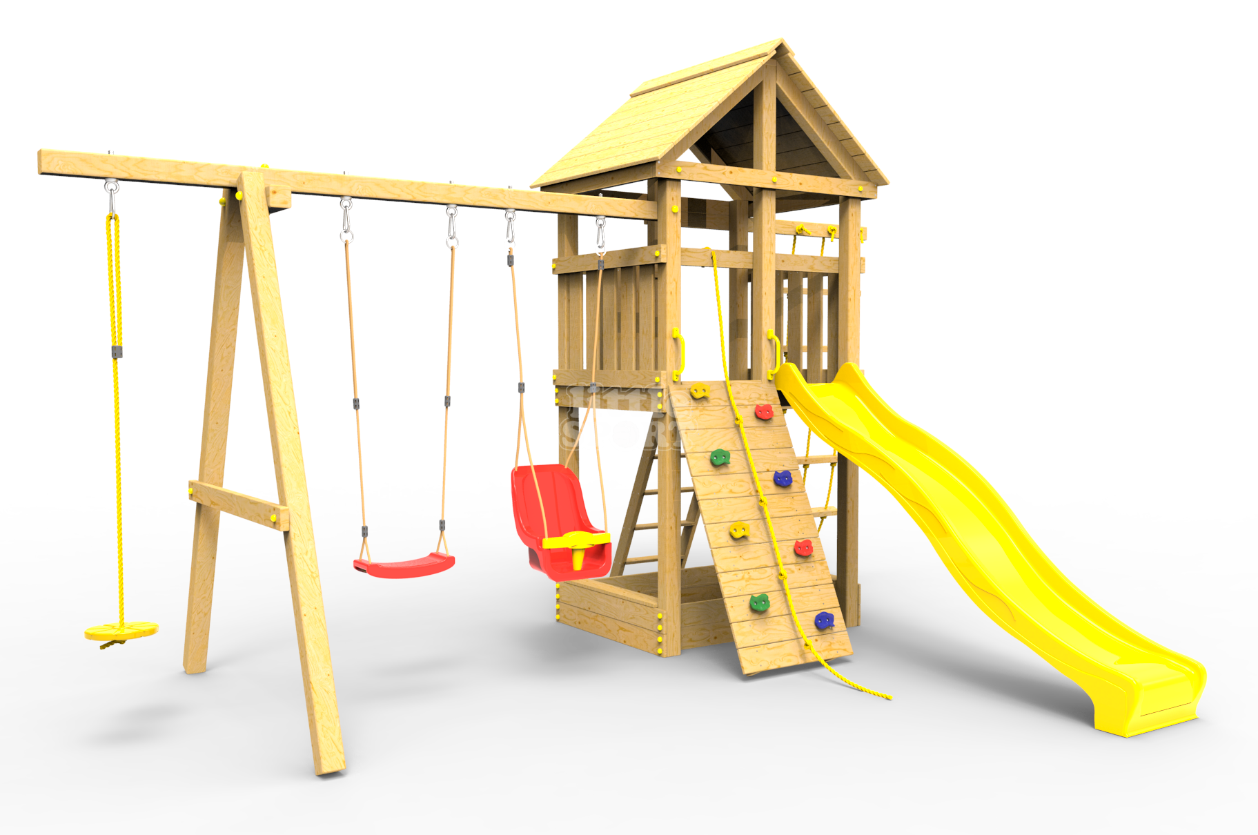 Обращаем Ваше внимание, что фактический цвет детской площадки может отличаться от представленных фото на сайте. Специфика окраски нетоксичными пропитками и красителями допускает отклонения в цветовой гамме отгружаемых изделий. Также обратите внимание, что фактический цвет может отличаться из-за цветопередачи устройства на котором Вы смотрите фото.