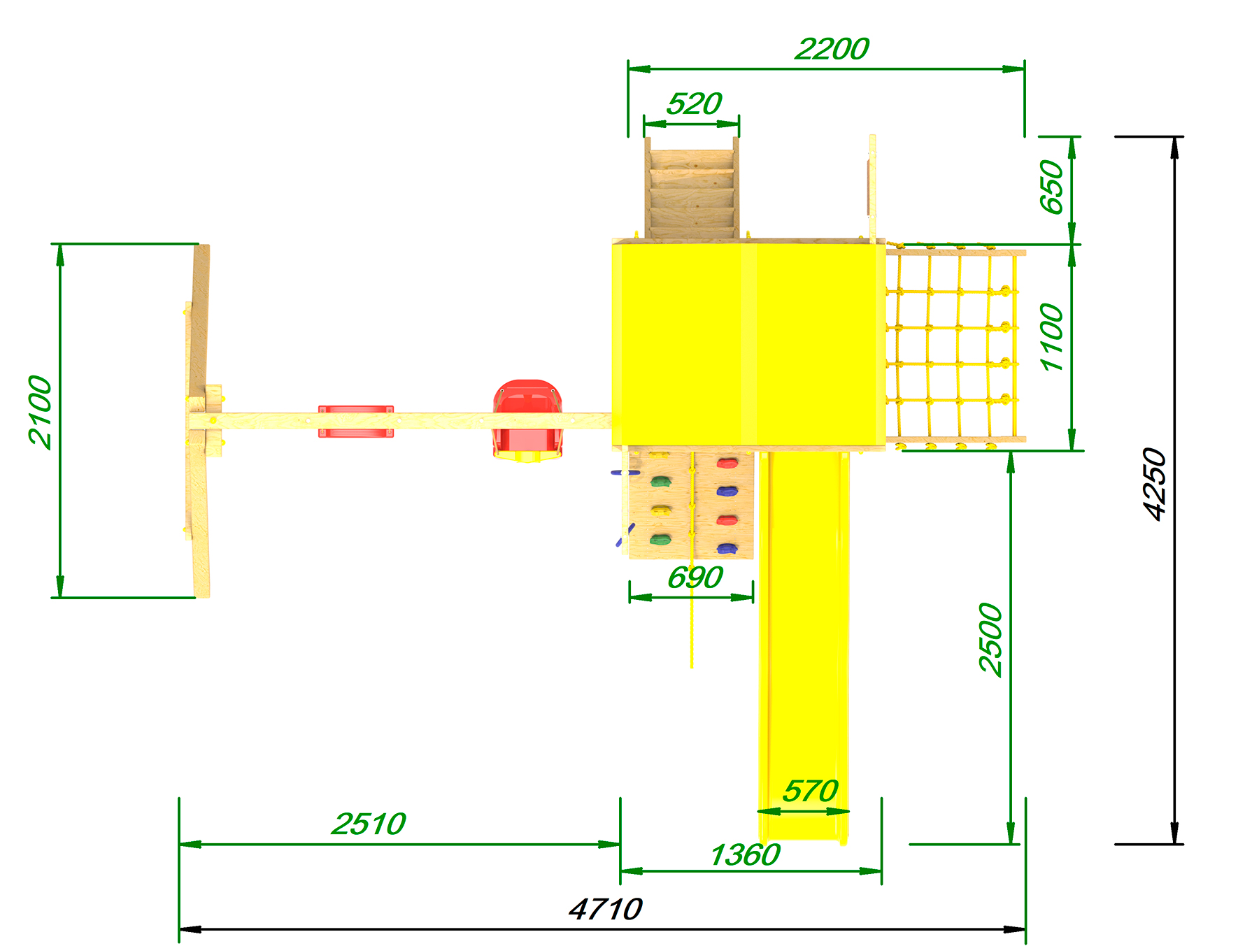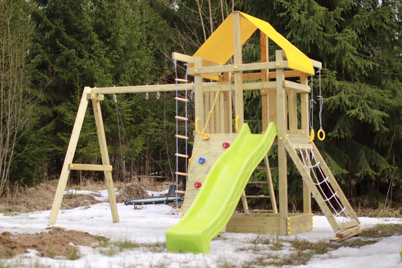 Обращаем Ваше внимание, что фактический цвет детской площадки может отличаться от представленных фото на сайте. Специфика окраски нетоксичными пропитками и красителями допускает отклонения в цветовой гамме отгружаемых изделий. Также обратите внимание, что фактический цвет может отличаться из-за цветопередачи устройства на котором Вы смотрите фото.