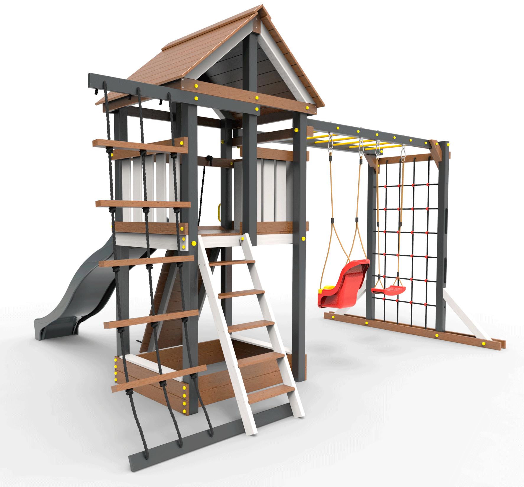 Обращаем Ваше внимание, что фактический цвет детской площадки может отличаться от представленных фото на сайте. Специфика окраски нетоксичными пропитками и красителями допускает отклонения в цветовой гамме отгружаемых изделий. Также обратите внимание, что фактический цвет может отличаться из-за цветопередачи устройства на котором Вы смотрите фото.