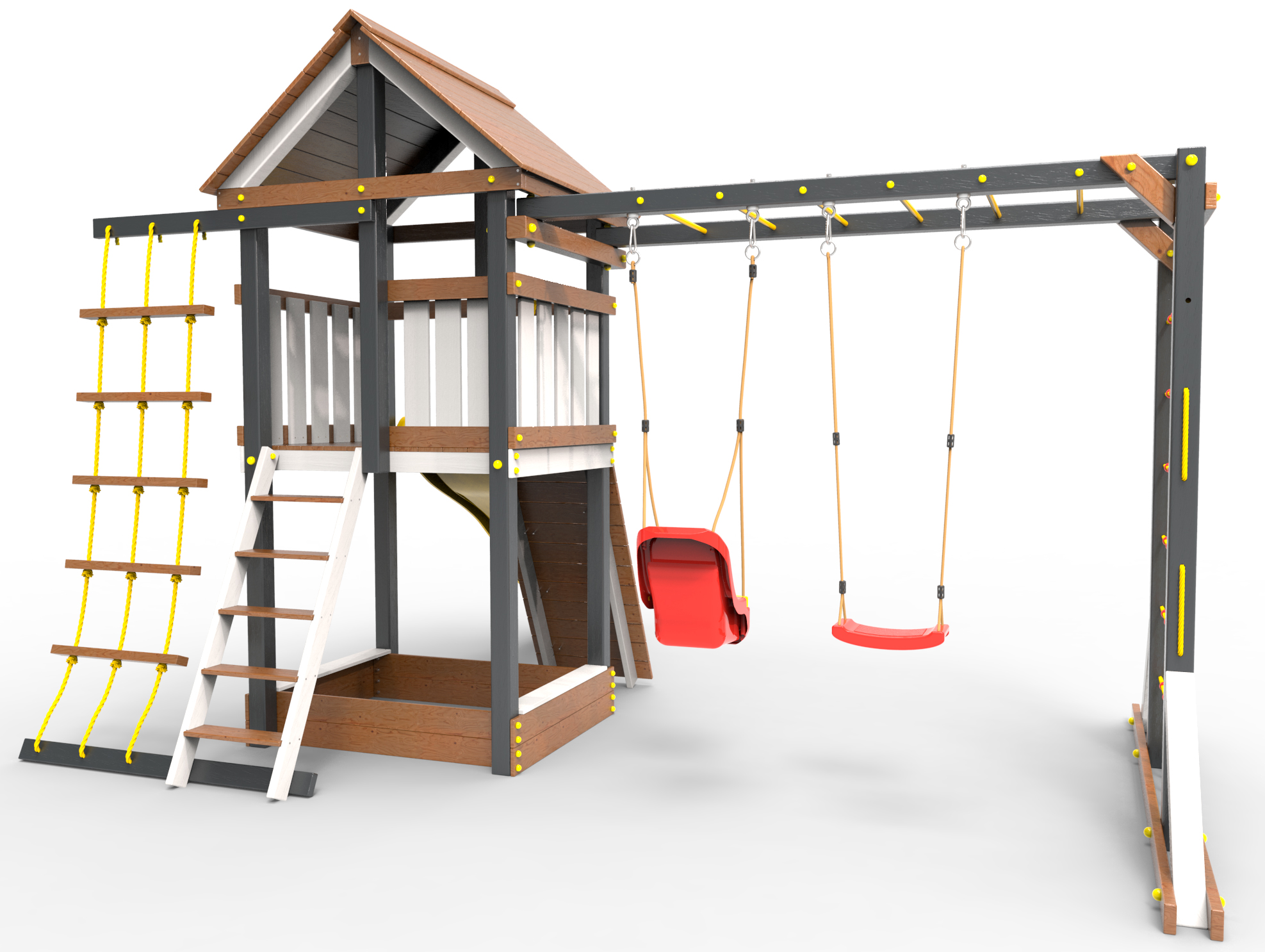 Обращаем Ваше внимание, что фактический цвет детской площадки может отличаться от представленных фото на сайте. Специфика окраски нетоксичными пропитками и красителями допускает отклонения в цветовой гамме отгружаемых изделий. Также обратите внимание, что фактический цвет может отличаться из-за цветопередачи устройства на котором Вы смотрите фото.