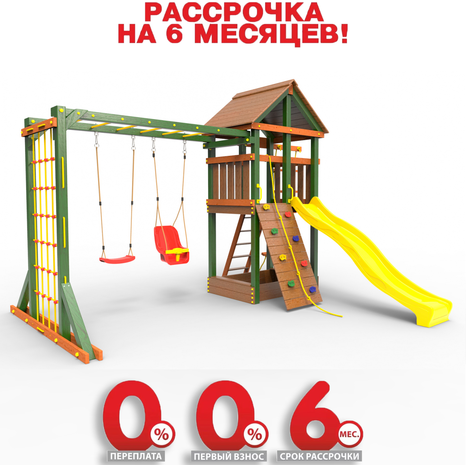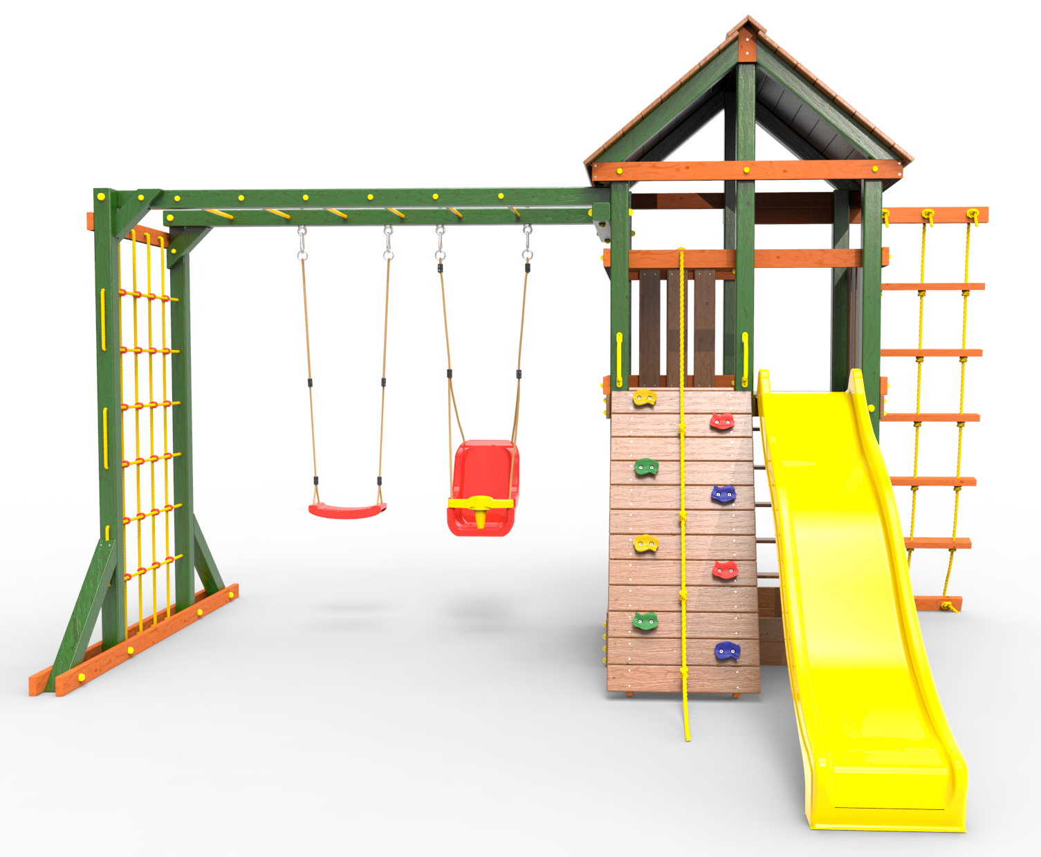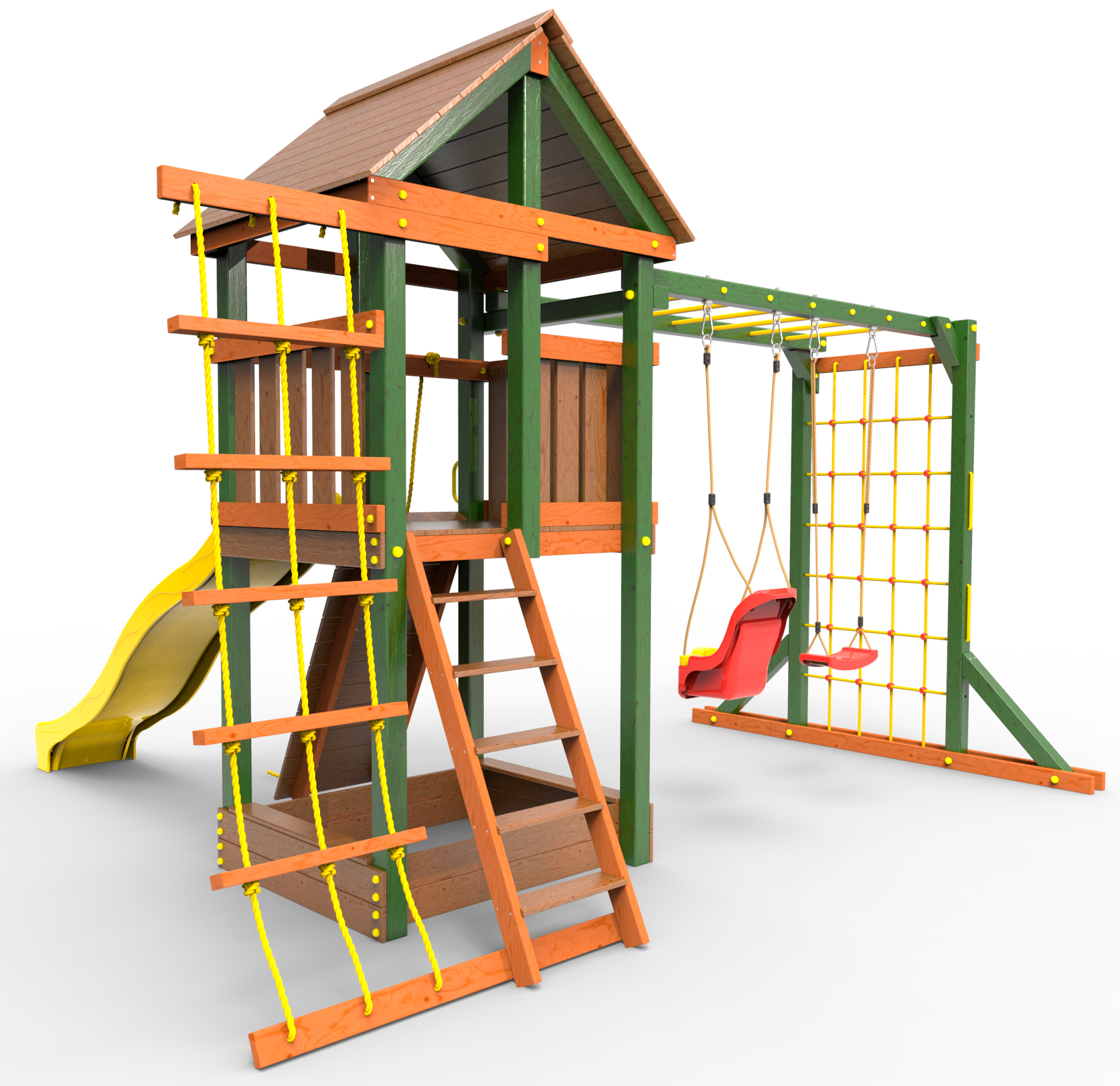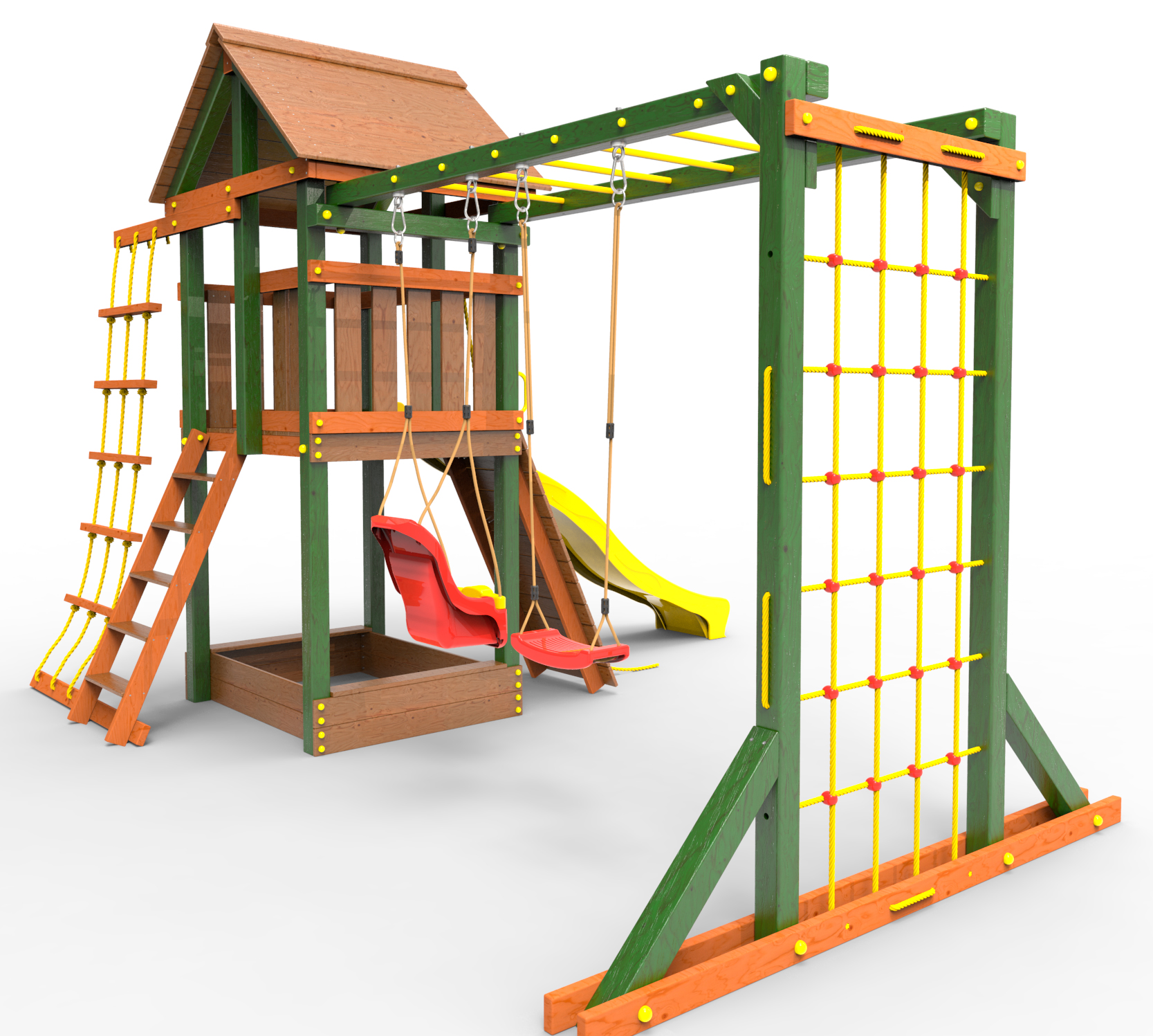 Обращаем Ваше внимание, что фактический цвет детской площадки может отличаться от представленных фото на сайте. Специфика окраски нетоксичными пропитками и красителями допускает отклонения в цветовой гамме отгружаемых изделий. Также обратите внимание, что фактический цвет может отличаться из-за цветопередачи устройства на котором Вы смотрите фото.