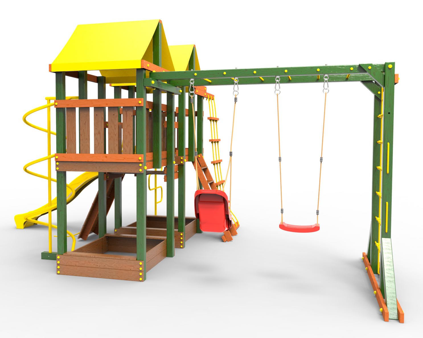 Обращаем Ваше внимание, что фактический цвет детской площадки может отличаться от представленных фото на сайте. Специфика окраски нетоксичными пропитками и красителями допускает отклонения в цветовой гамме отгружаемых изделий. Также обратите внимание, что фактический цвет может отличаться из-за цветопередачи устройства на котором Вы смотрите фото.