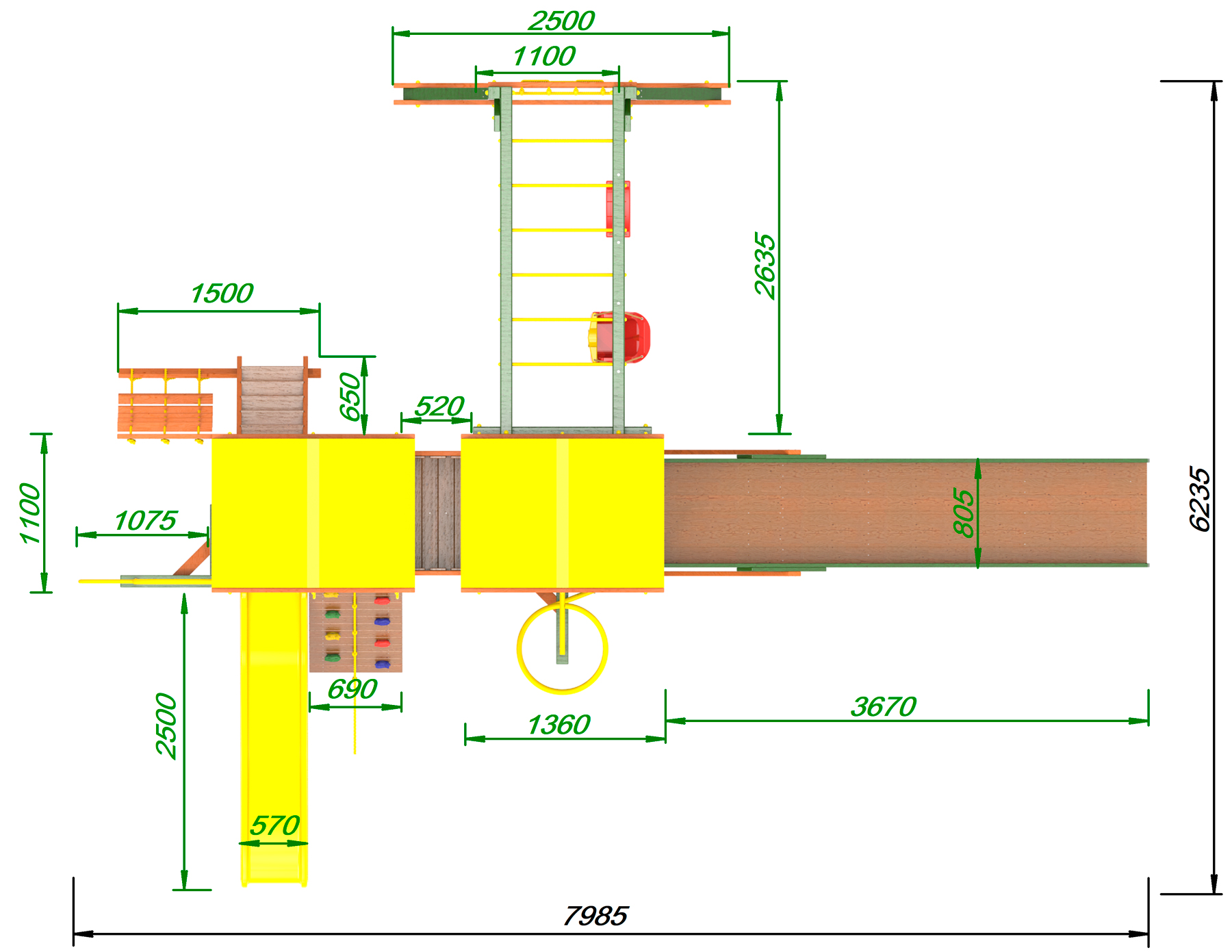 Обращаем Ваше внимание, что фактический цвет детской площадки может отличаться от представленных фото на сайте. Специфика окраски нетоксичными пропитками и красителями допускает отклонения в цветовой гамме отгружаемых изделий. Также обратите внимание, что фактический цвет может отличаться из-за цветопередачи устройства на котором Вы смотрите фото.