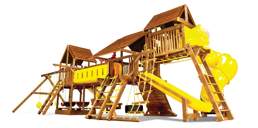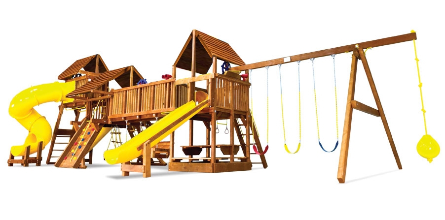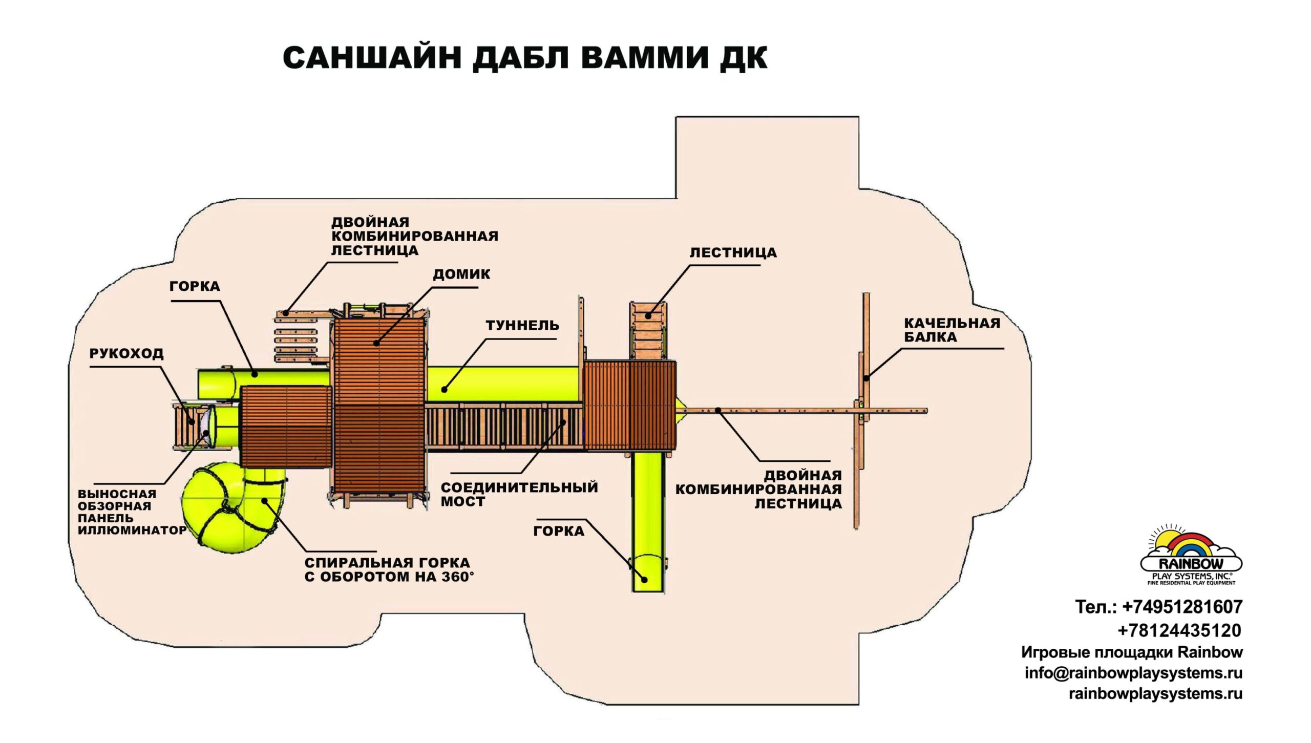 Детская площадка Саншайн Дабл Вамми – это одно из лучших решений, придуманных в мировом производстве детского игрового оборудования. Дабл Вамми это сразу две площадки (формы Кастл и Клубхаус) соединенным между собой деревянным мостом и туннелем из плотного пластика. При этом данный комплекс имеет оптимальные габаритные размеры, которые позволяют разместить его на сравнительно небольшом участке. Саншайн Дабл Вамми выбирают застройщики, архитекторы, компании по благоустройству парков. Также данный комплекс подойдет для установки на территории частного загородного дома.
