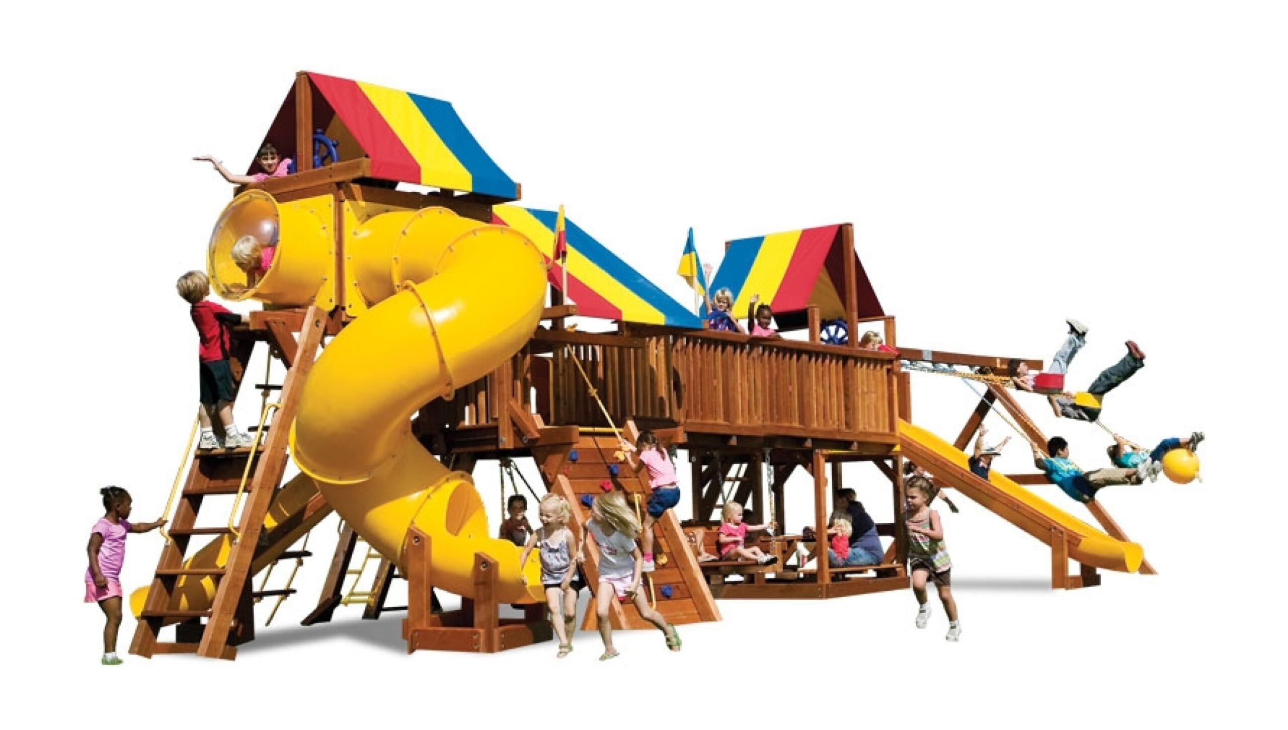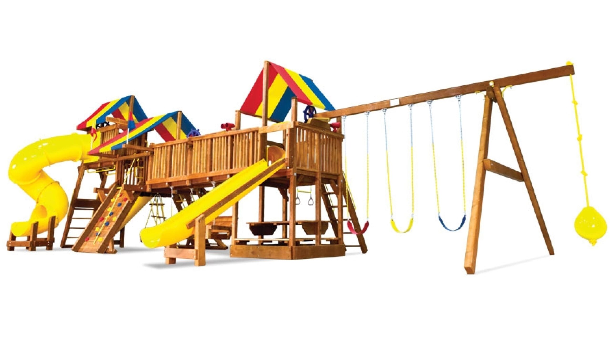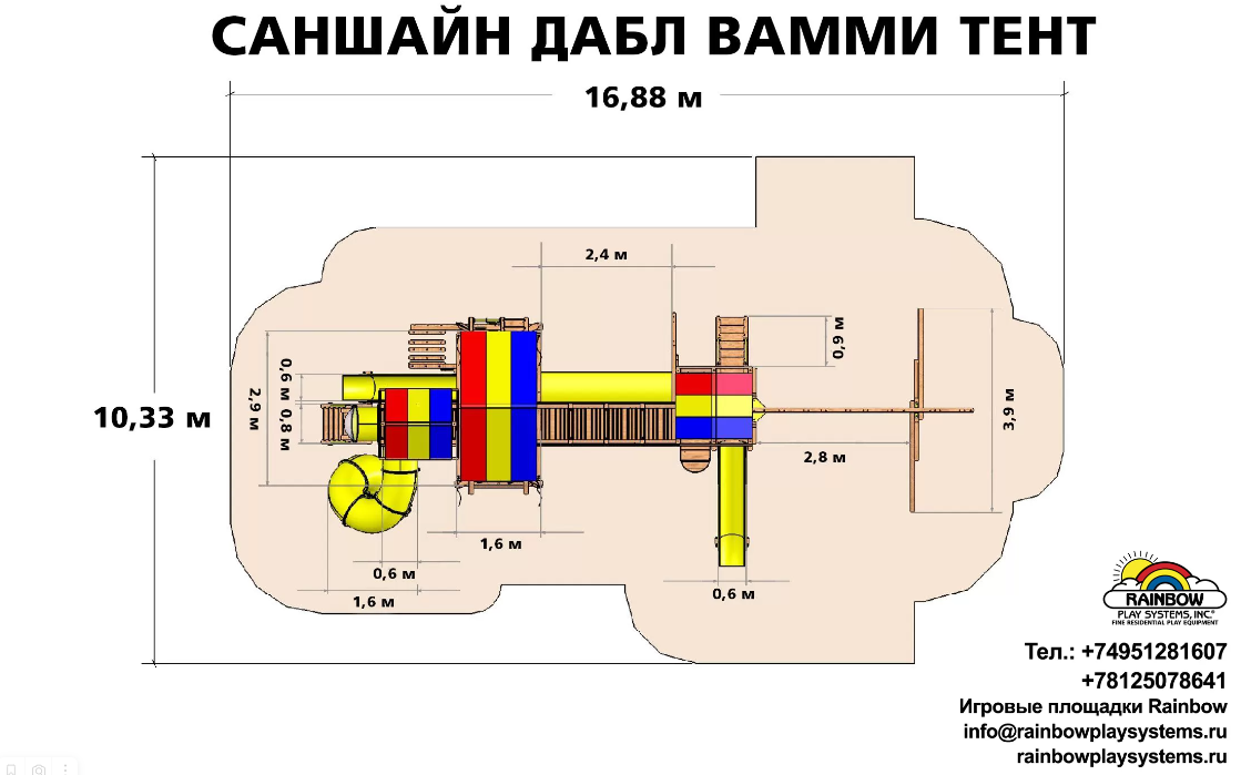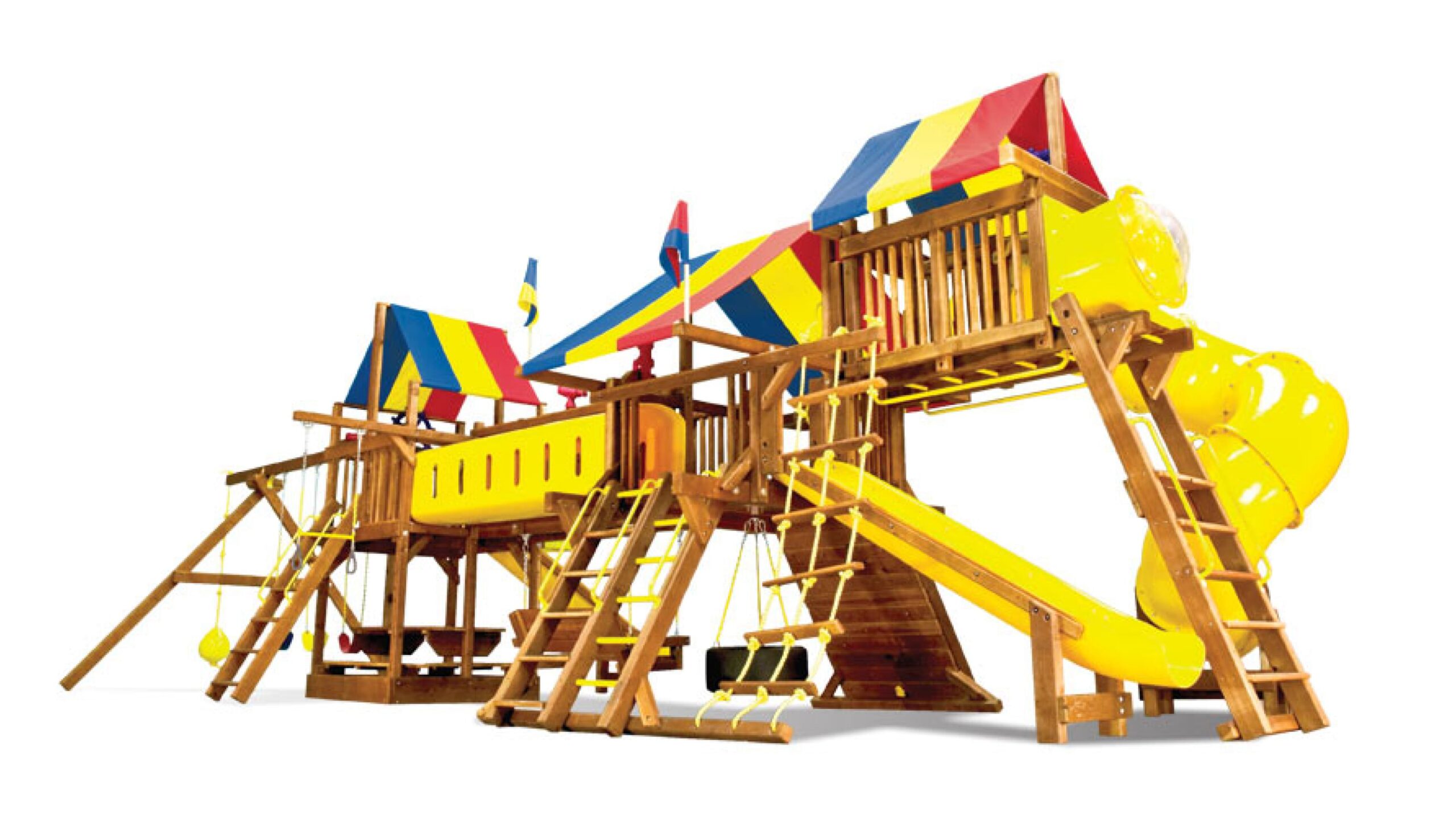 Детская площадка Саншайн Дабл Вамми Тент – это одно из лучших решений, придуманных в мировом производстве детского игрового оборудования. Дабл Вамми это сразу две площадки (формы Кастл и Клубхаус) соединенным между собой деревянным мостом и туннелем из плотного пластика. При этом данный комплекс имеет оптимальные габаритные размеры, которые позволяют разместить его на сравнительно небольшом участке. Прямые горки или горки с двойной волной. Саншайн Дабл Вамми выбирают застройщики, архитекторы, компании по благоустройству парков. Также данный комплекс подойдет для установки на территории частного загородного дома.