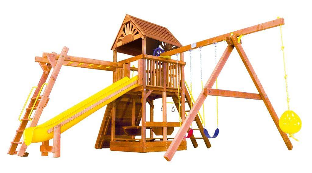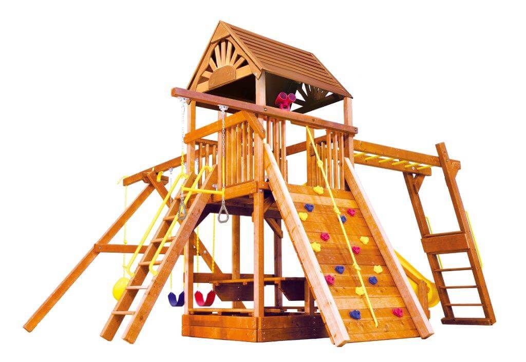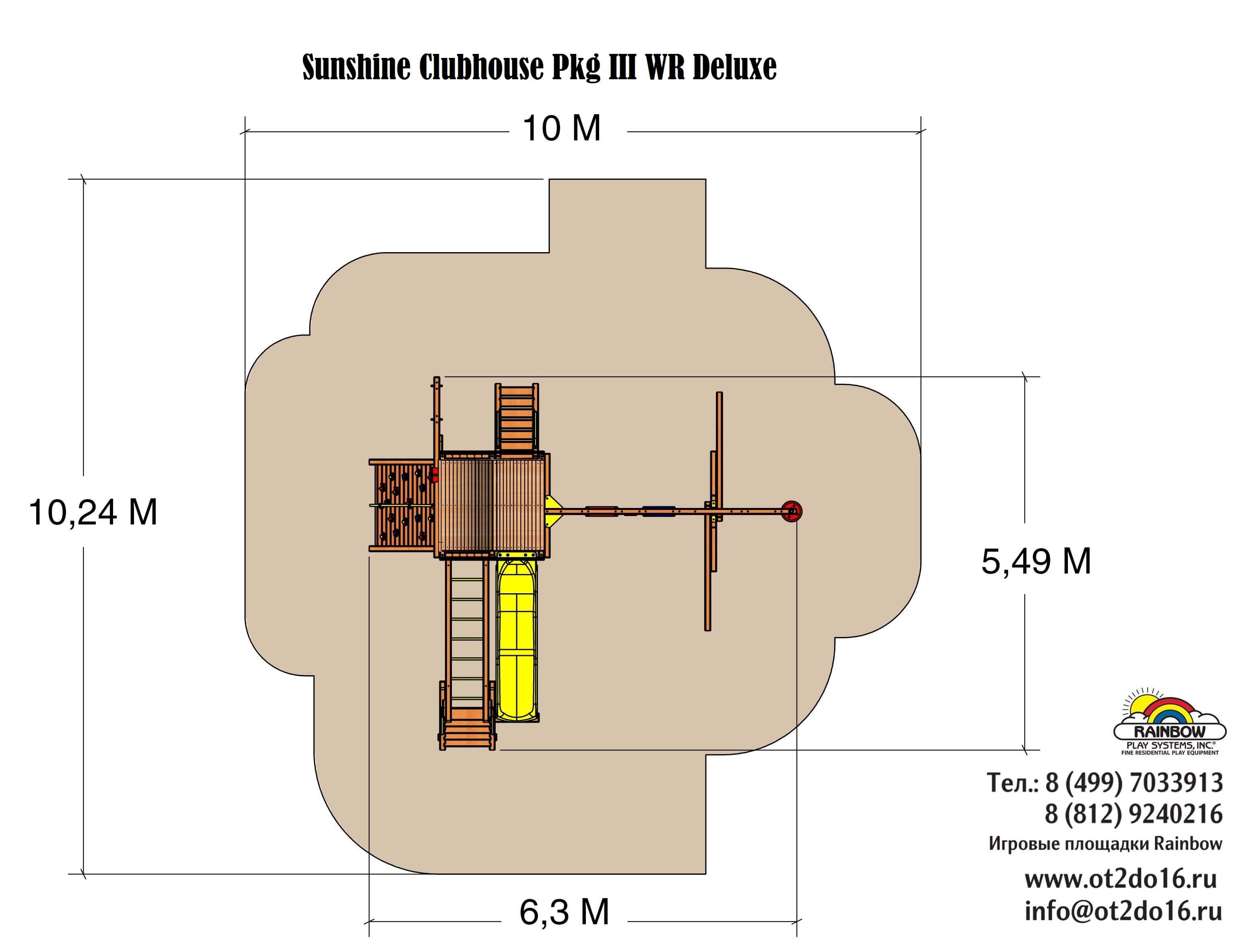 Выполненная из стойких к износу и погодным воздействиям материалов детская площадка Саншайн Клубхаус III Делюкс ДК – игровой комплекс «премиум» класса – замечательное решение для любого двора или даже городского сквера. Это базовая комплектация, в которую входят все основные игровые блоки: основание клубхаус, рукоход, скалодром, качельная балка на 3 качели, 3х метровая прямая горка, столик со скамейками для пикника. Это комплекс со временем вы сможете доукомплектовать вторым домиком и спиральной горкой, так как площадки серии Саншайн имеют уникальную возможность расти вместе с вашими детьми!