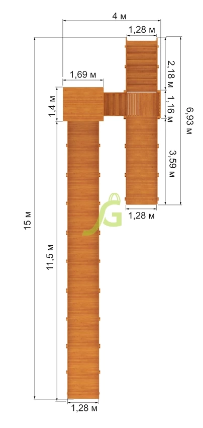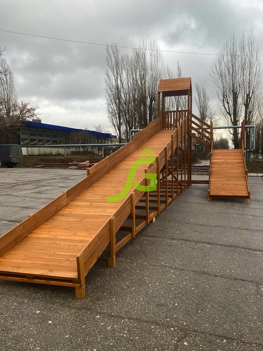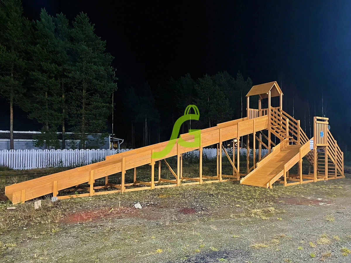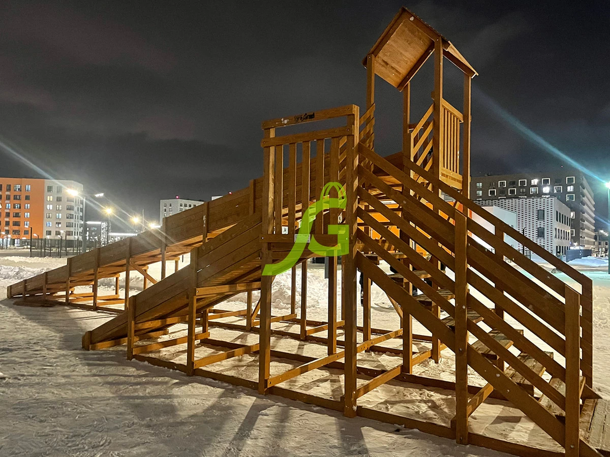 Характеристики зимней деревянной горки "Snow Fox 12 м" с двумя скатами