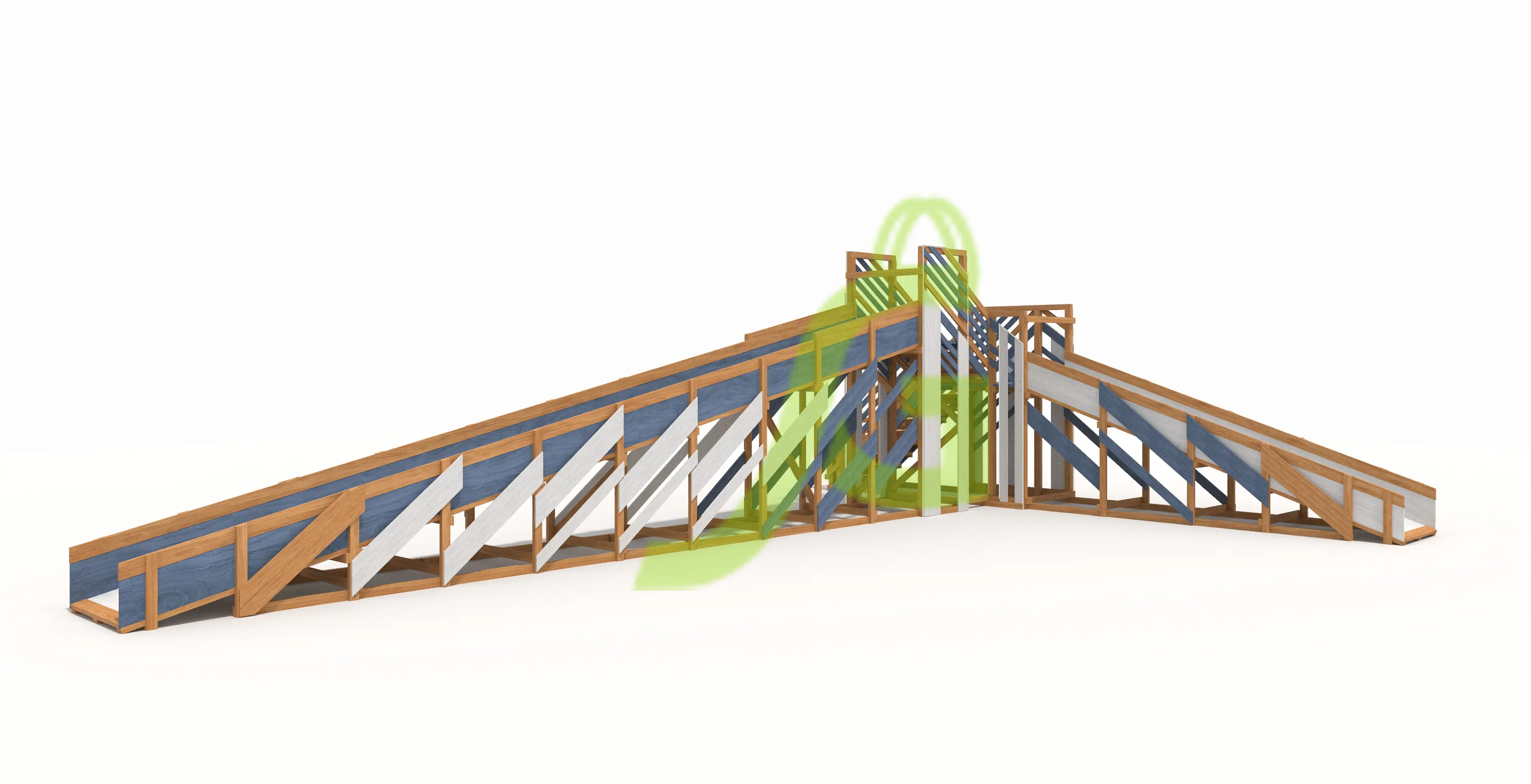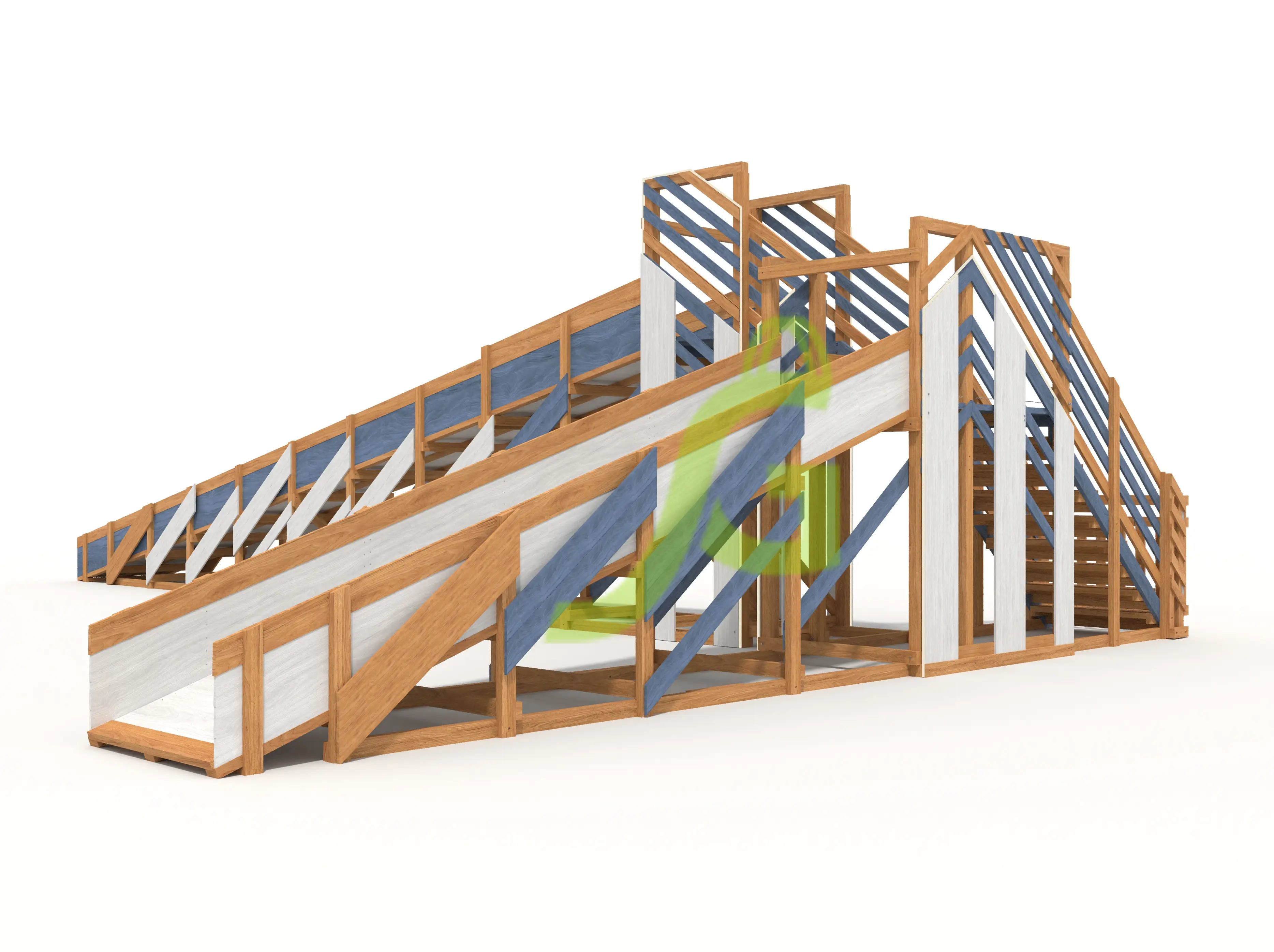 Характеристики зимней деревянной горки "Snow Fox 12 м" с двумя скатами мод.2