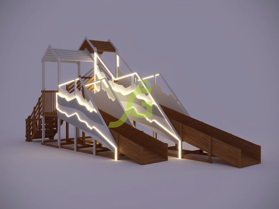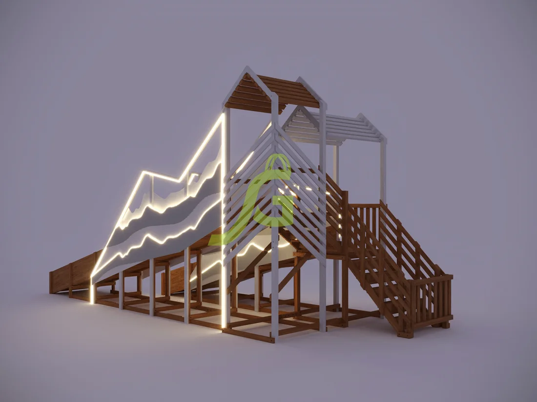 Характеристики зимней деревянной горки "IgraGrad Snow Fox", скат 8+5 м