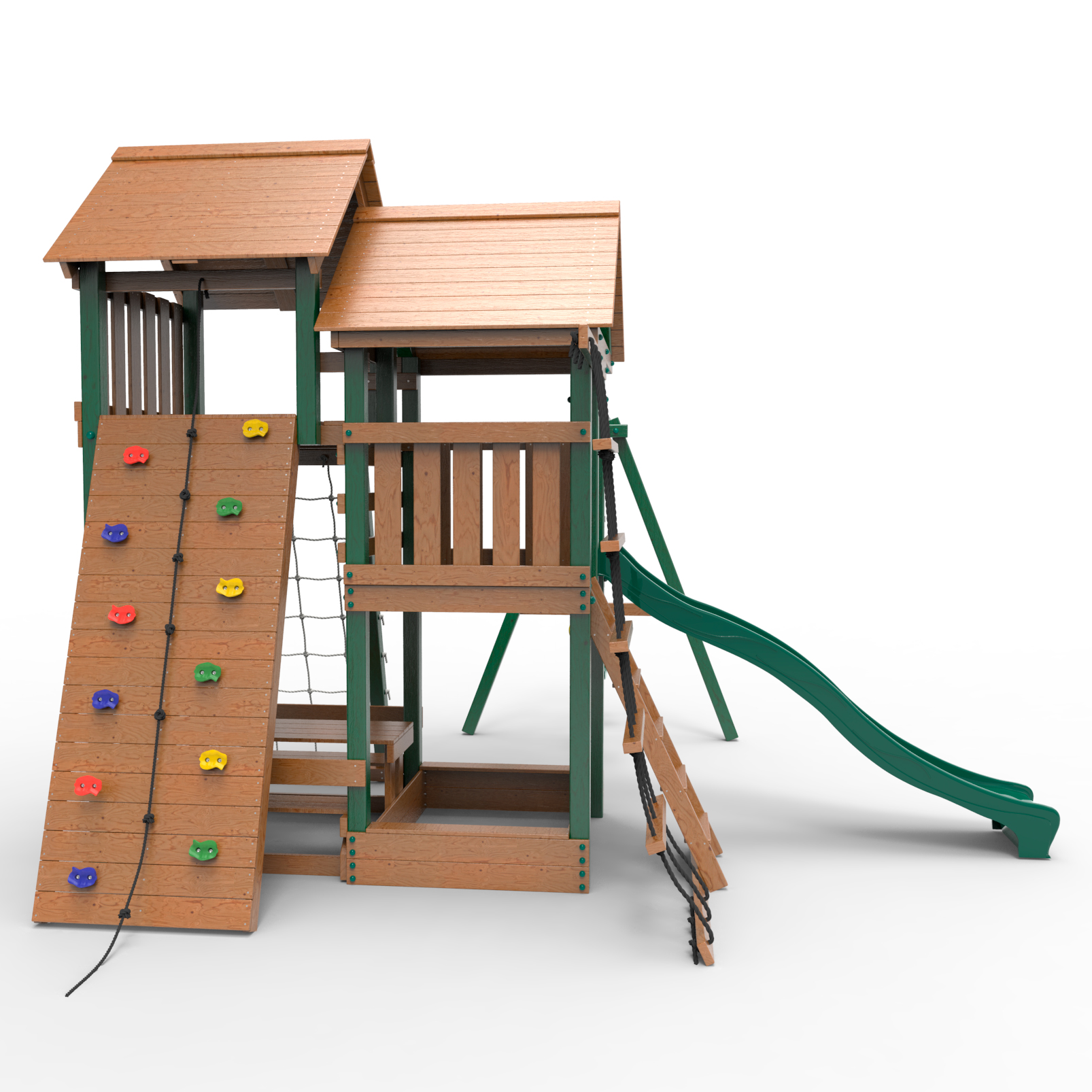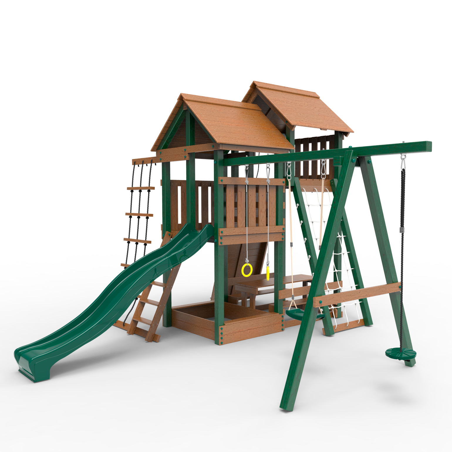 Обращаем Ваше внимание, что фактический цвет детской площадки может отличаться от представленных фото на сайте. Специфика окраски нетоксичными пропитками и красителями допускает отклонения в цветовой гамме отгружаемых изделий. Также обратите внимание, что фактический цвет может отличаться из-за цветопередачи устройства на котором Вы смотрите фото.