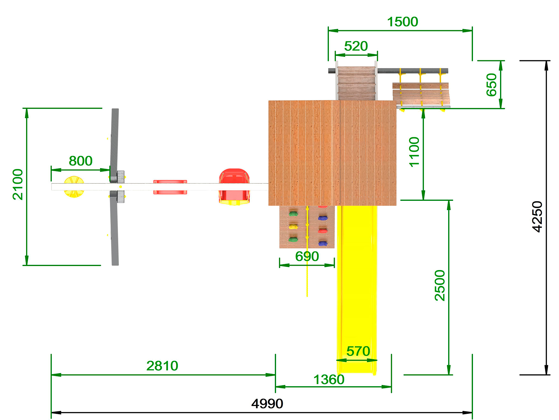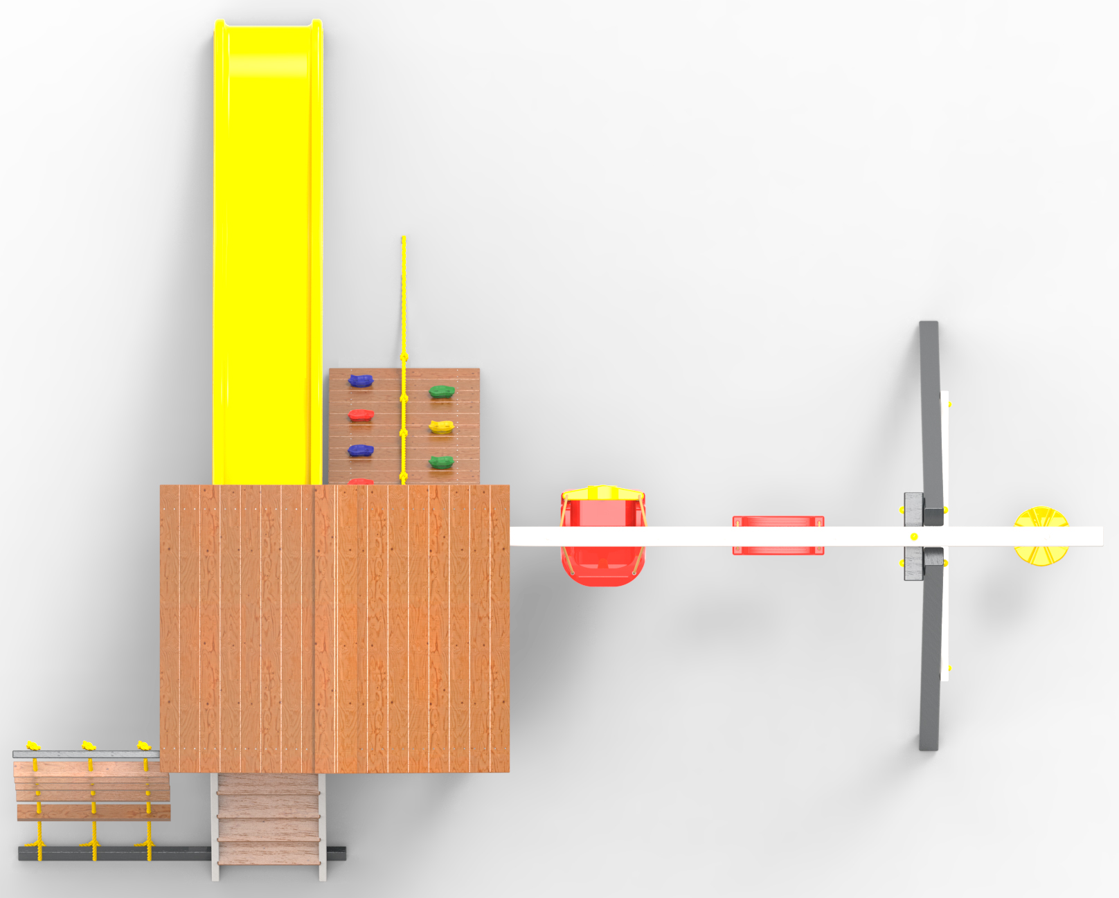 -опоры игрового домика изготовлены из многослойного клееного соснового бруса толщиной 90мм с закругленными углами диаметр 20мм;