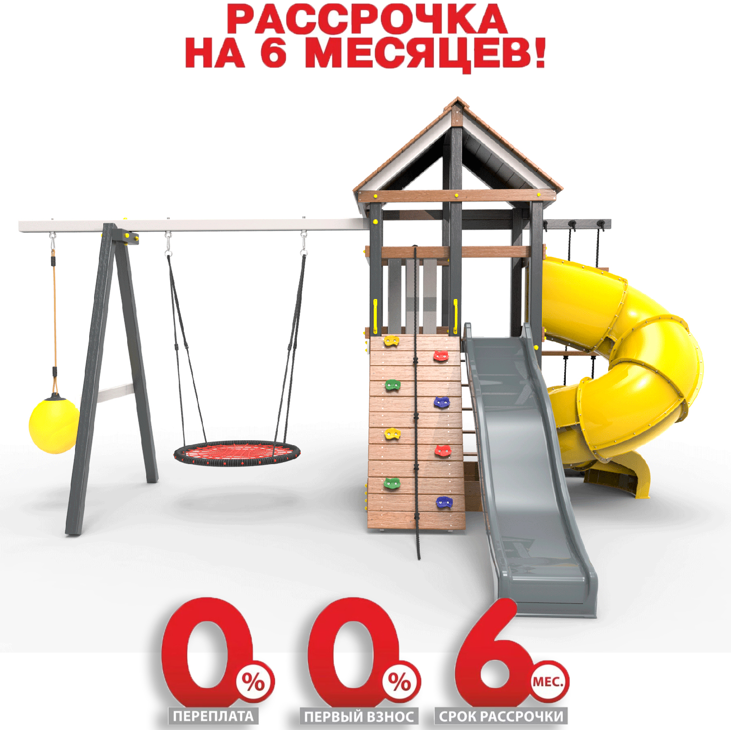 Обращаем Ваше внимание, что фактический цвет детской площадки может отличаться от представленных фото на сайте. Специфика окраски нетоксичными пропитками и красителями допускает отклонения в цветовой гамме отгружаемых изделий. Также обратите внимание, что фактический цвет может отличаться из-за цветопередачи устройства на котором Вы смотрите фото.