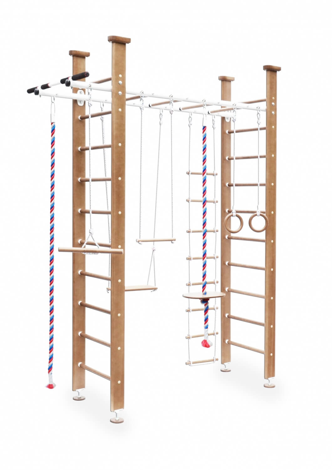 Комплектация: турник лиана, вер.лестница, качель, трапеция, кольца, тарзанка, канат,
