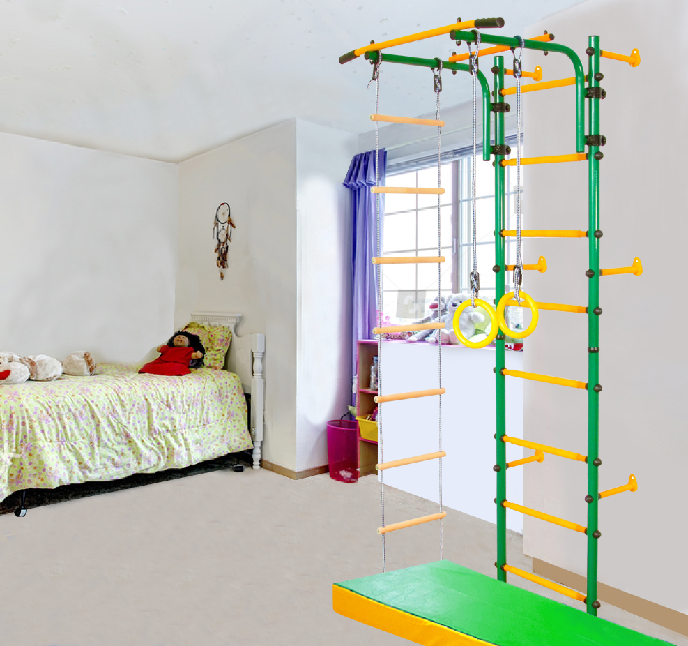 Стандартная комплектация: канат, веревочная лестница, кольца гимнастические.