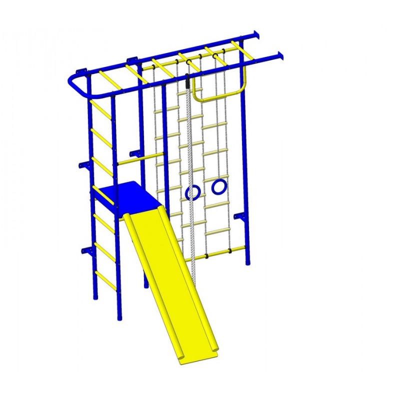 Баскетбольное кольцо, боксерская груша, трапеция, тарзанка, веревочная лестница, мат спортивный.