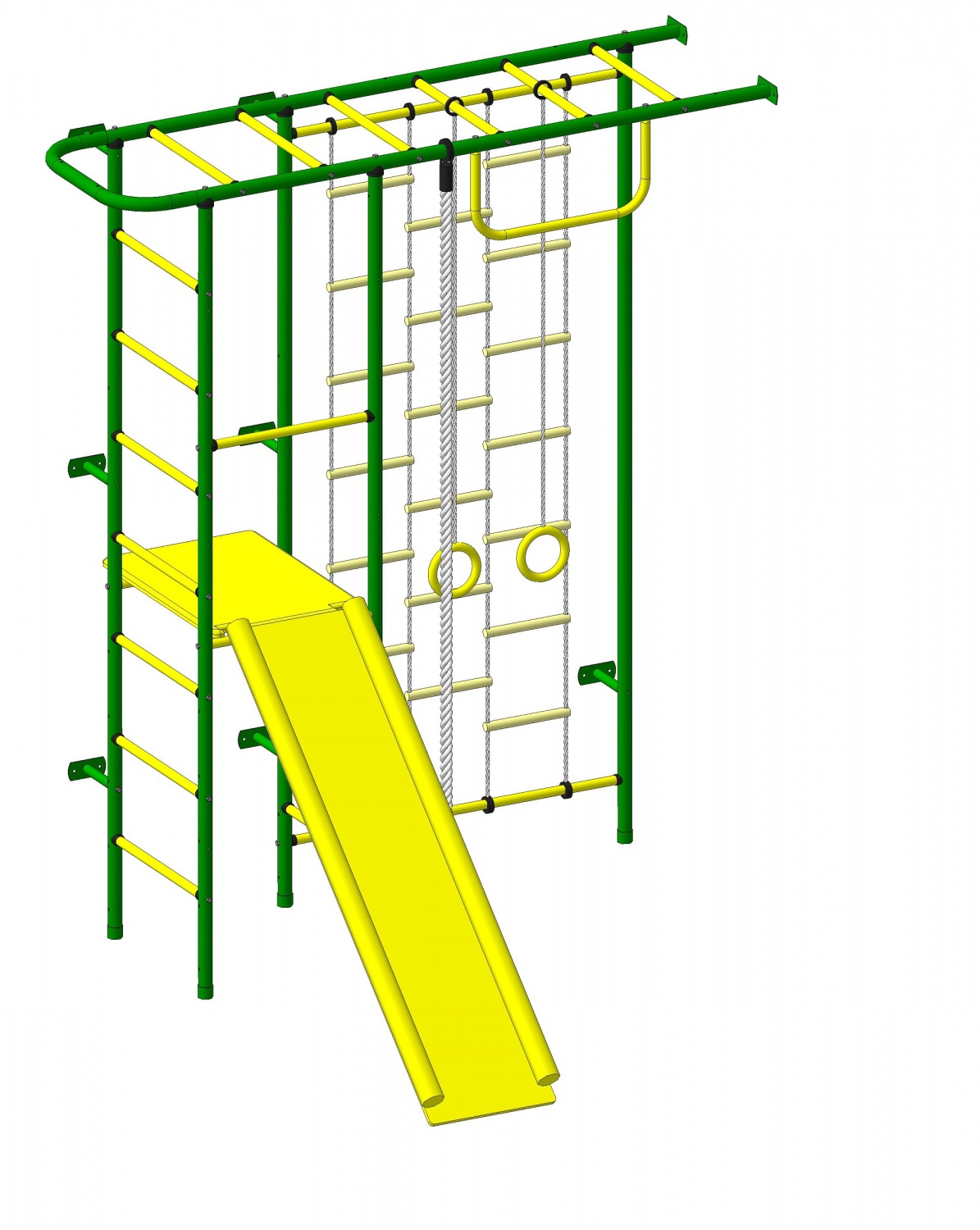 Баскетбольное кольцо, боксерская груша, трапеция, тарзанка, веревочная лестница, мат спортивный.