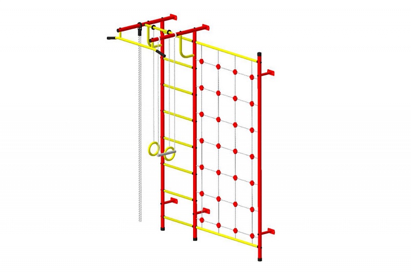 Комплектация: шведская стенка, турник, канат, гимнастические кольца, трапеция, канатный лаз