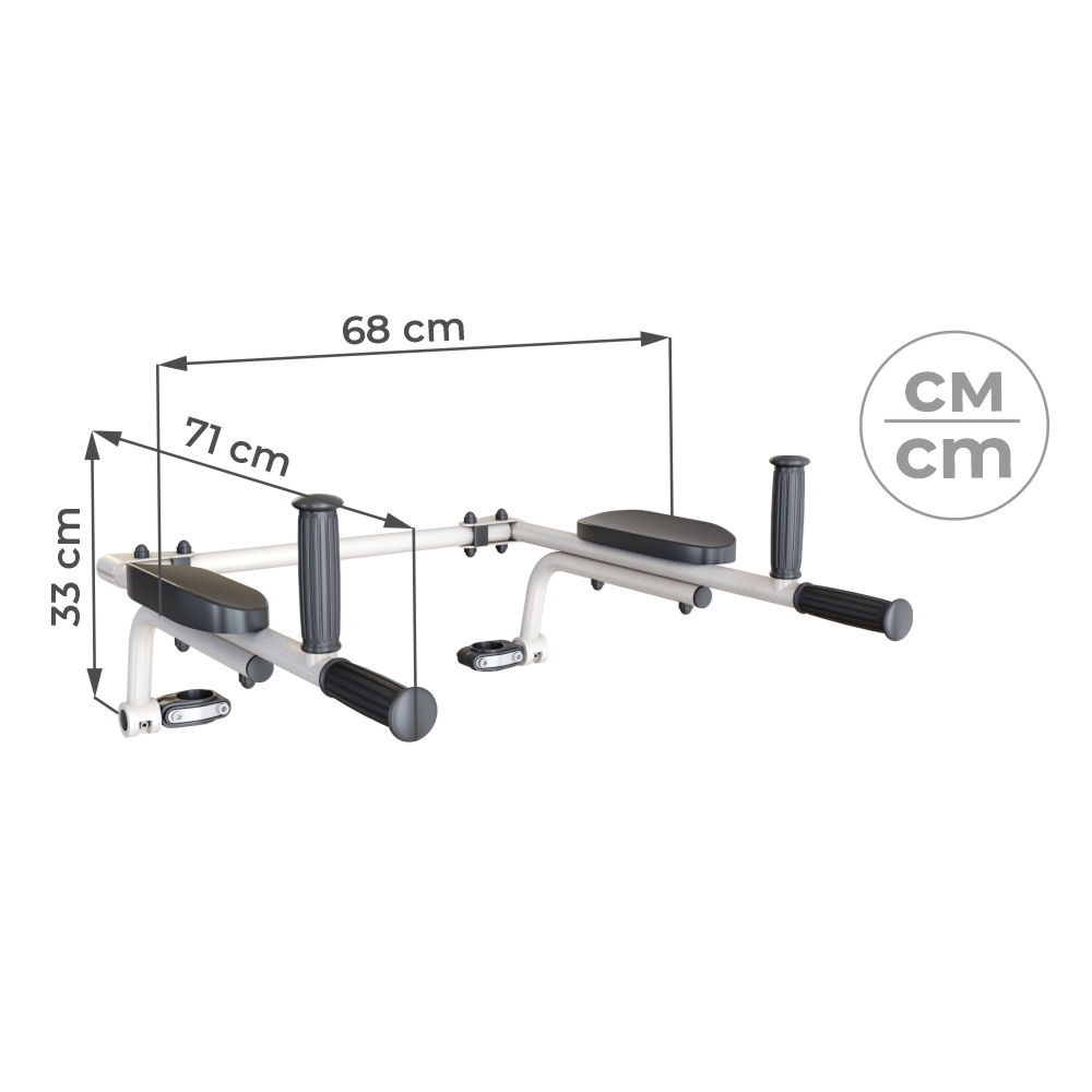 Брусья откидные подойдут пользователям, которые любят рациональность и экономию пространства. После упражнений они откидываются в вертикальное положение и не мешают занятиям на другом навесном оборудовании и не занимают место в помещении. Брусья снабжены четырьмя прорезиненными рукоятями и подлокотниками.