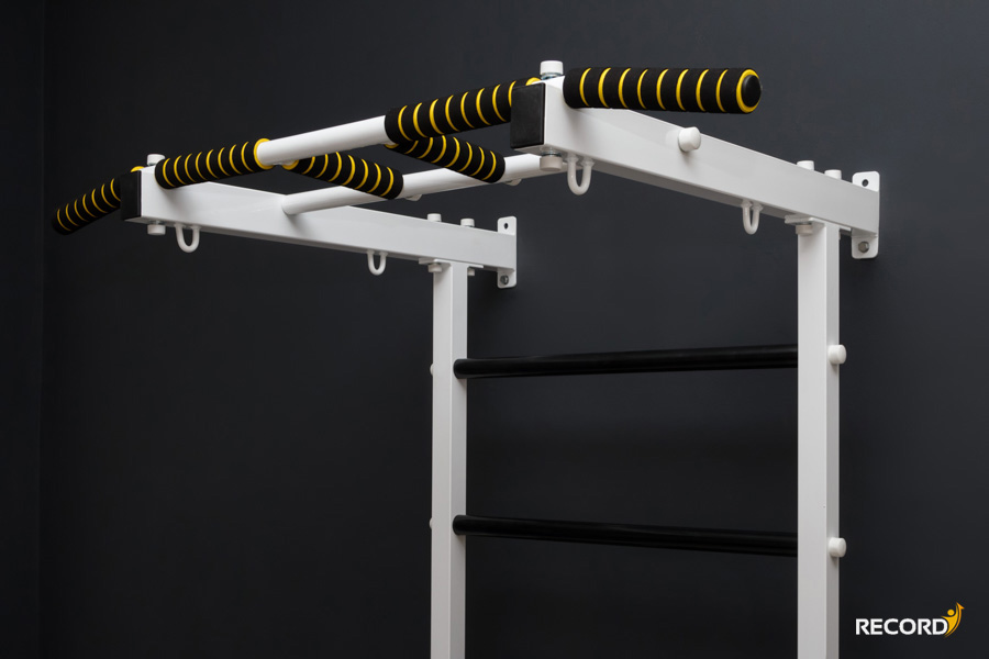 Универсальный съемный турник. Имеет 3 вида хватов - классический средний на ширине плеч, узкий параллельный и широкий хват. Вылет от стены 50 см позволяет не касаться шведской стенки при выполнении некоторых упражнениях.